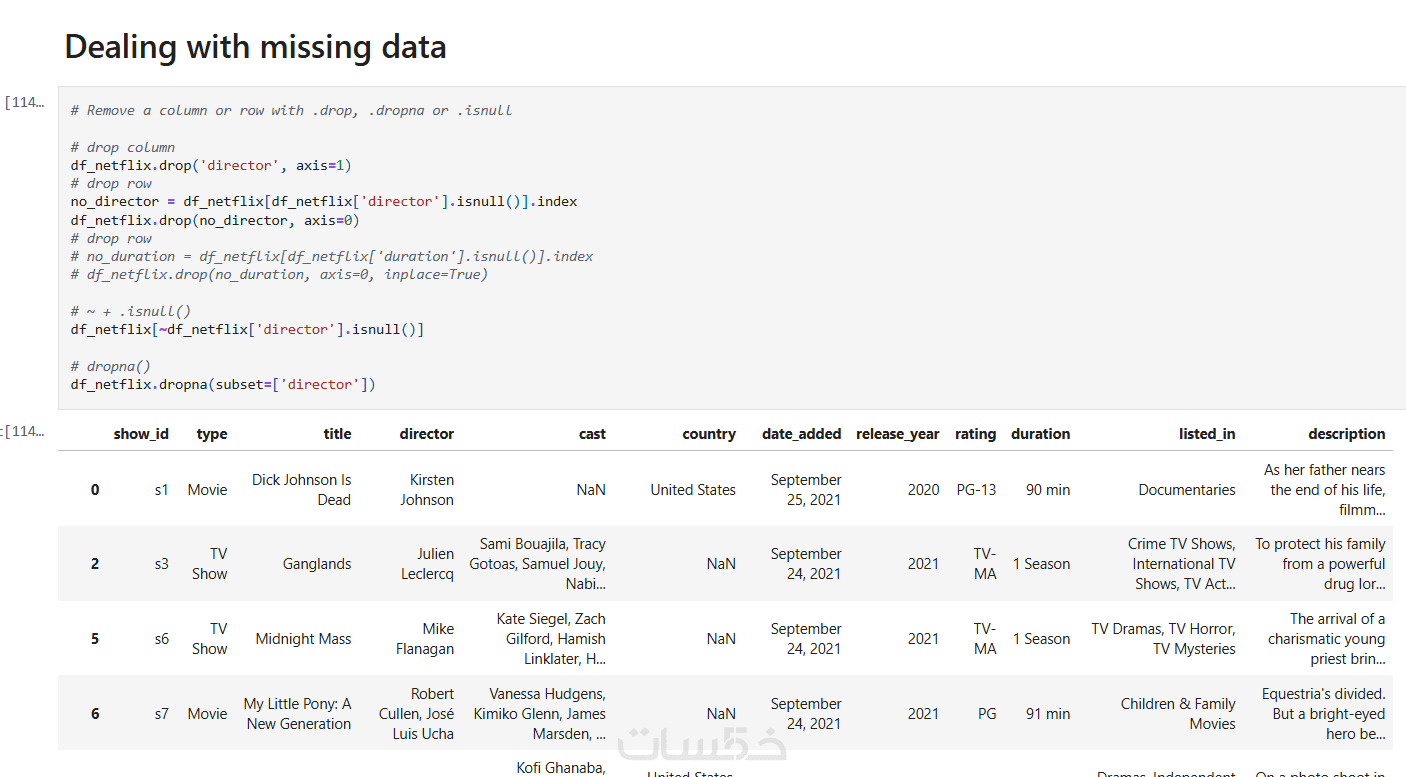 كيفية التعامل مع القيم المفقودة.
