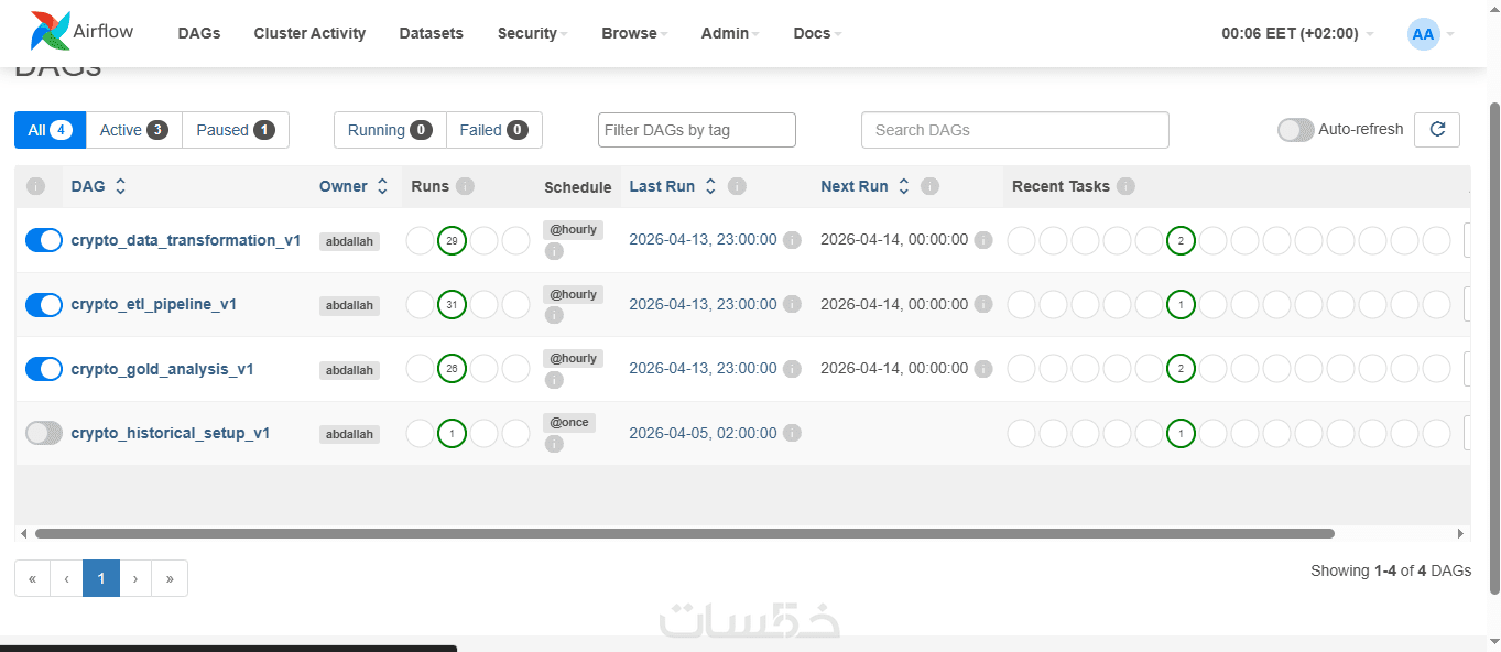 إضافة Airflow & Automation لل Pipeline لجدولة المهمة والعمل تلقائيا حتي عدد 2 DAGs