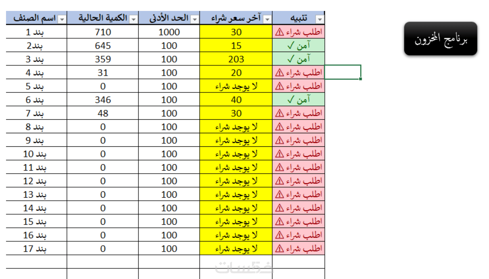 أقدم لك نظام مخزون متكامل على Excel يشمل: