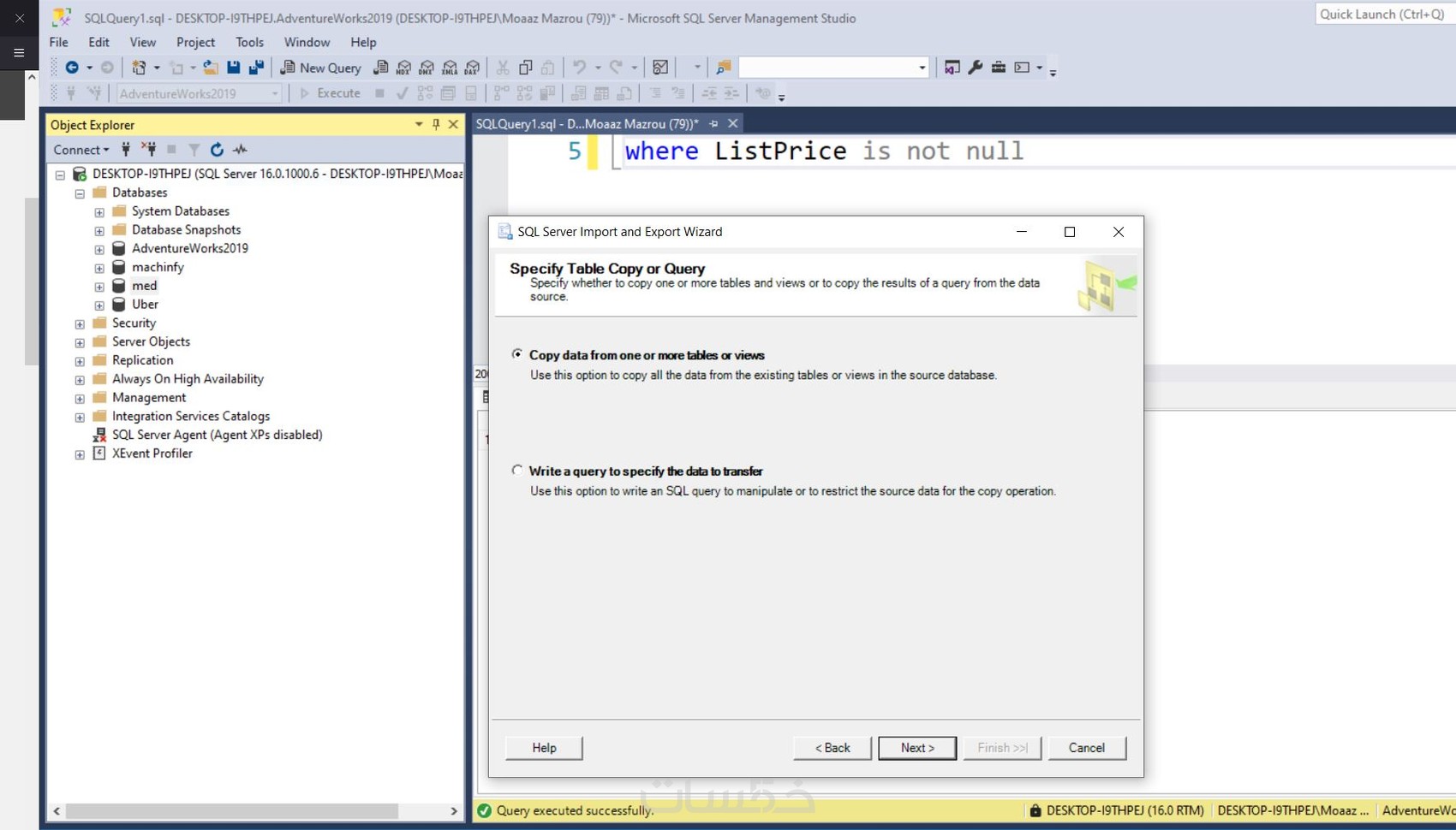 واقوم ايضا بنقل البيانات من الاكسيل الي SQL Server او من ال SQL Server الي الاكسيل.