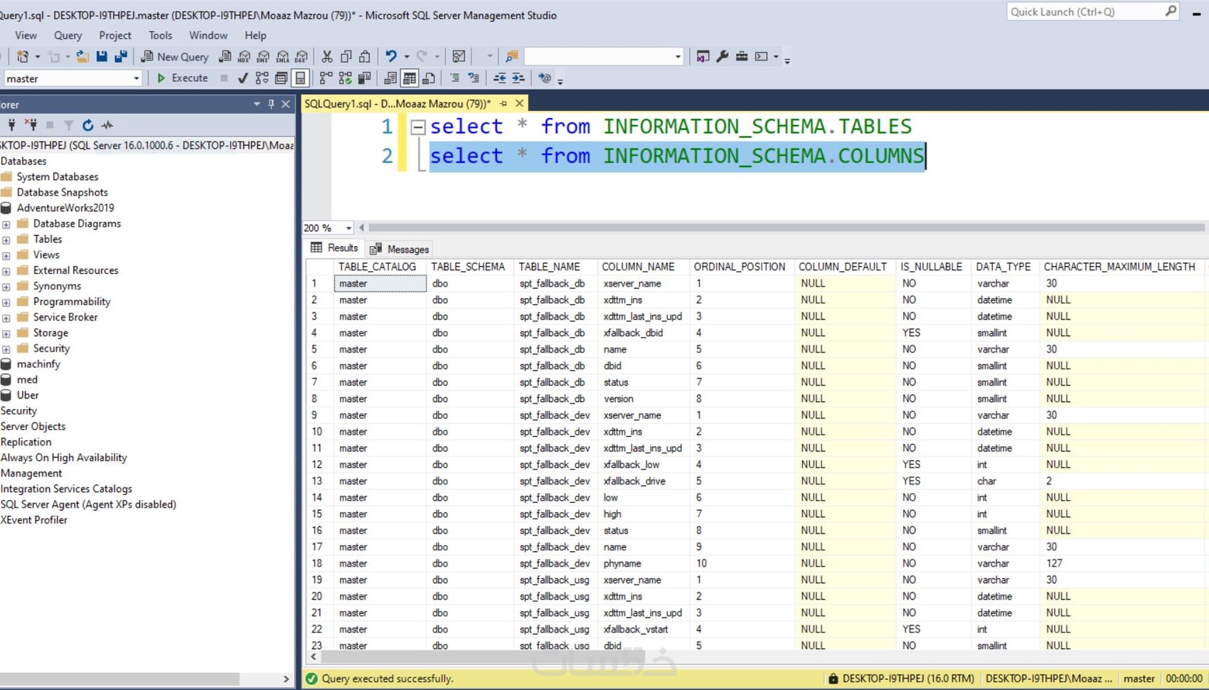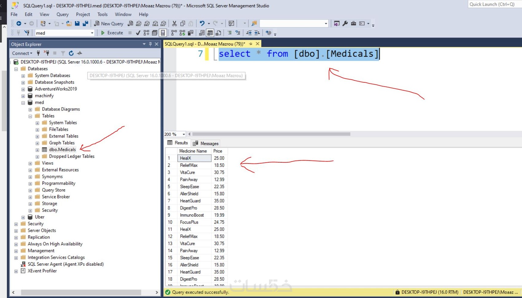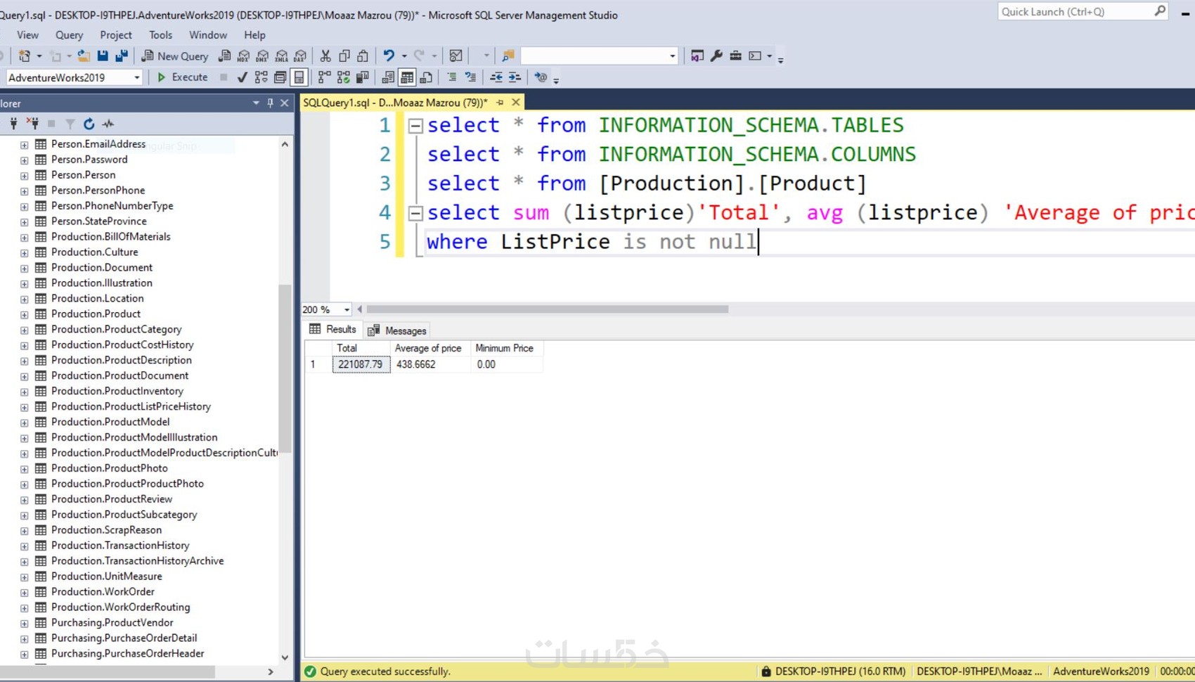 - عمل 3 كويري للاستعلامات علي البيانات المخزنة في ال SQL server.
