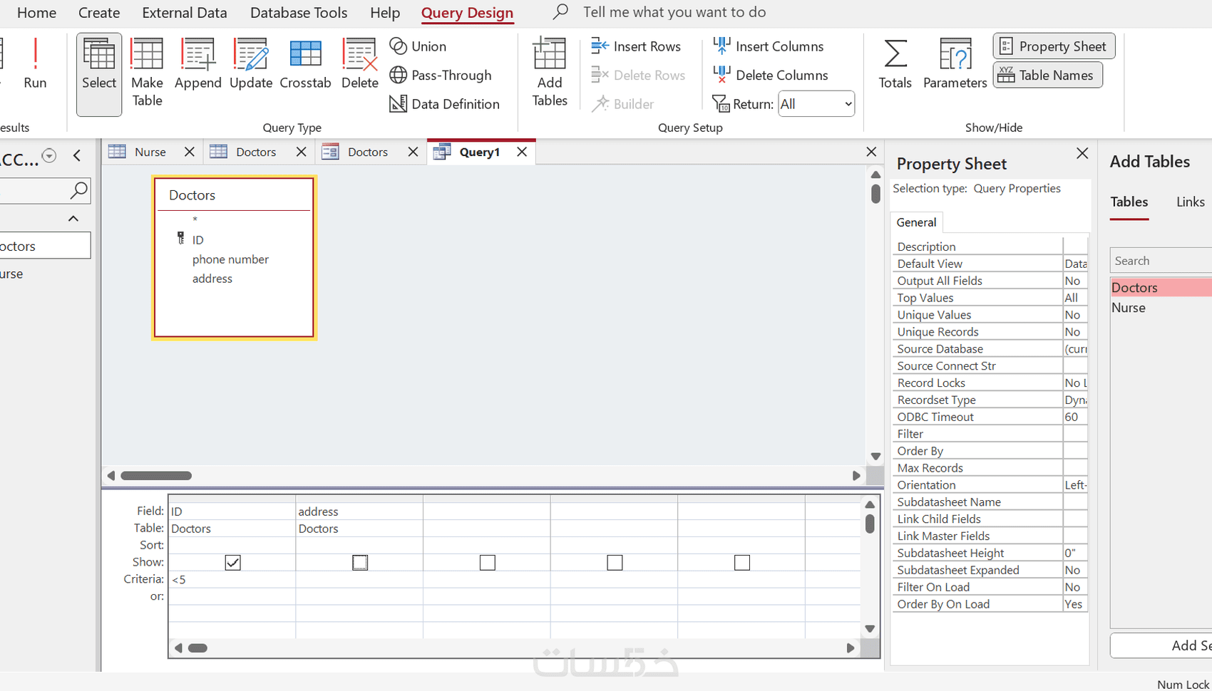 إضافة جدول من 20 خلية و نموذج و استعلام و تقرير