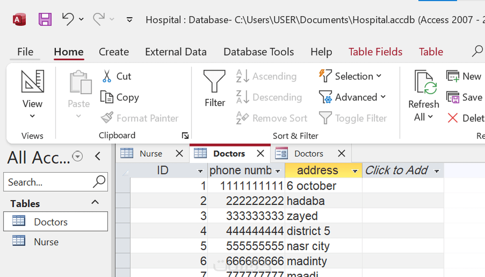 إضافة 2 جدول كل جدول مكون من 20 خلية و نموذجين و استعلامين و تقريرين