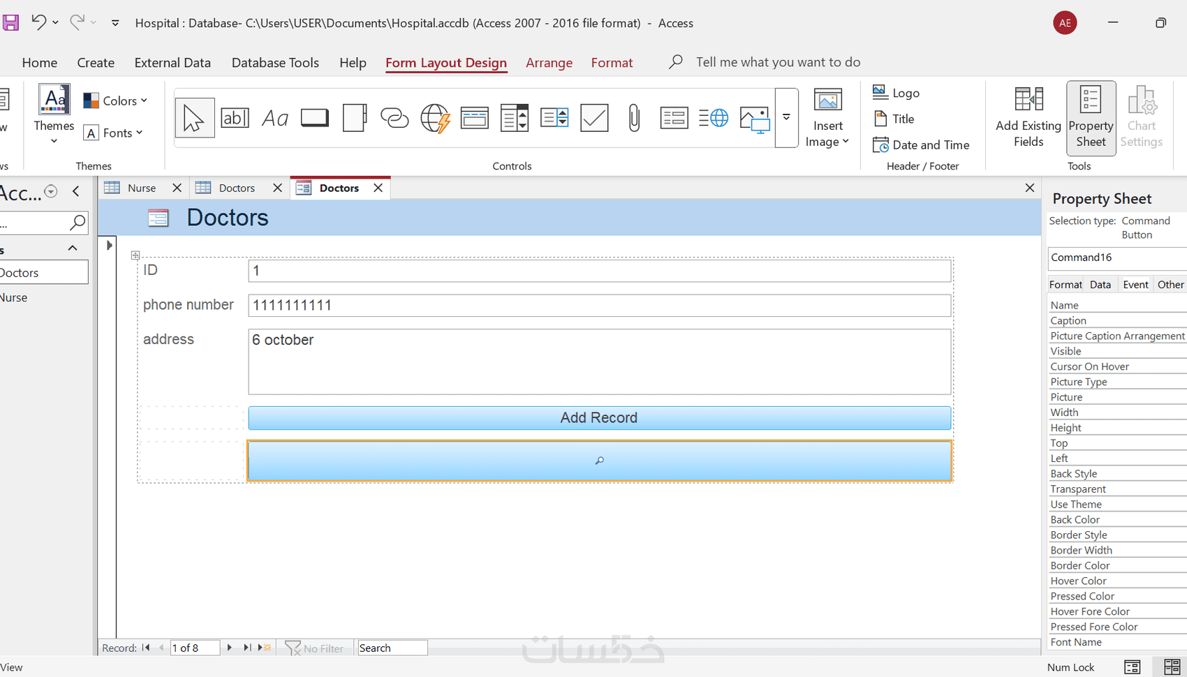 تصميم النماذج : إنشاء نماذج إدخال بيانات سلسة مع أزرار للبحث، التعديل، الحذف والإضافة.
