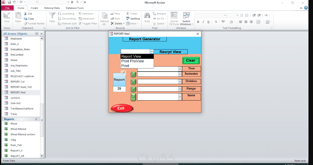 المستوى الاول قاعدة بيانات مكون من 2 جدول عدد 2 واجه و 2 تقرير