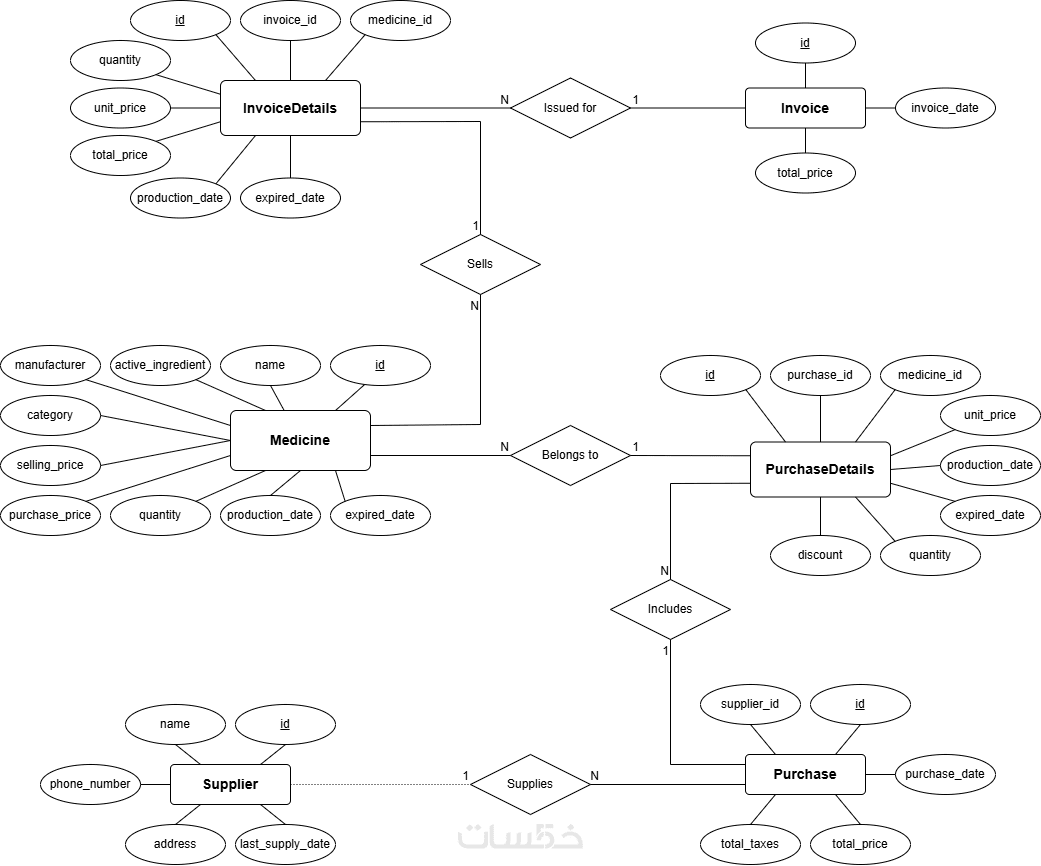 - علاقات بين الجداول (Foreign Keys) إن وُجدت.