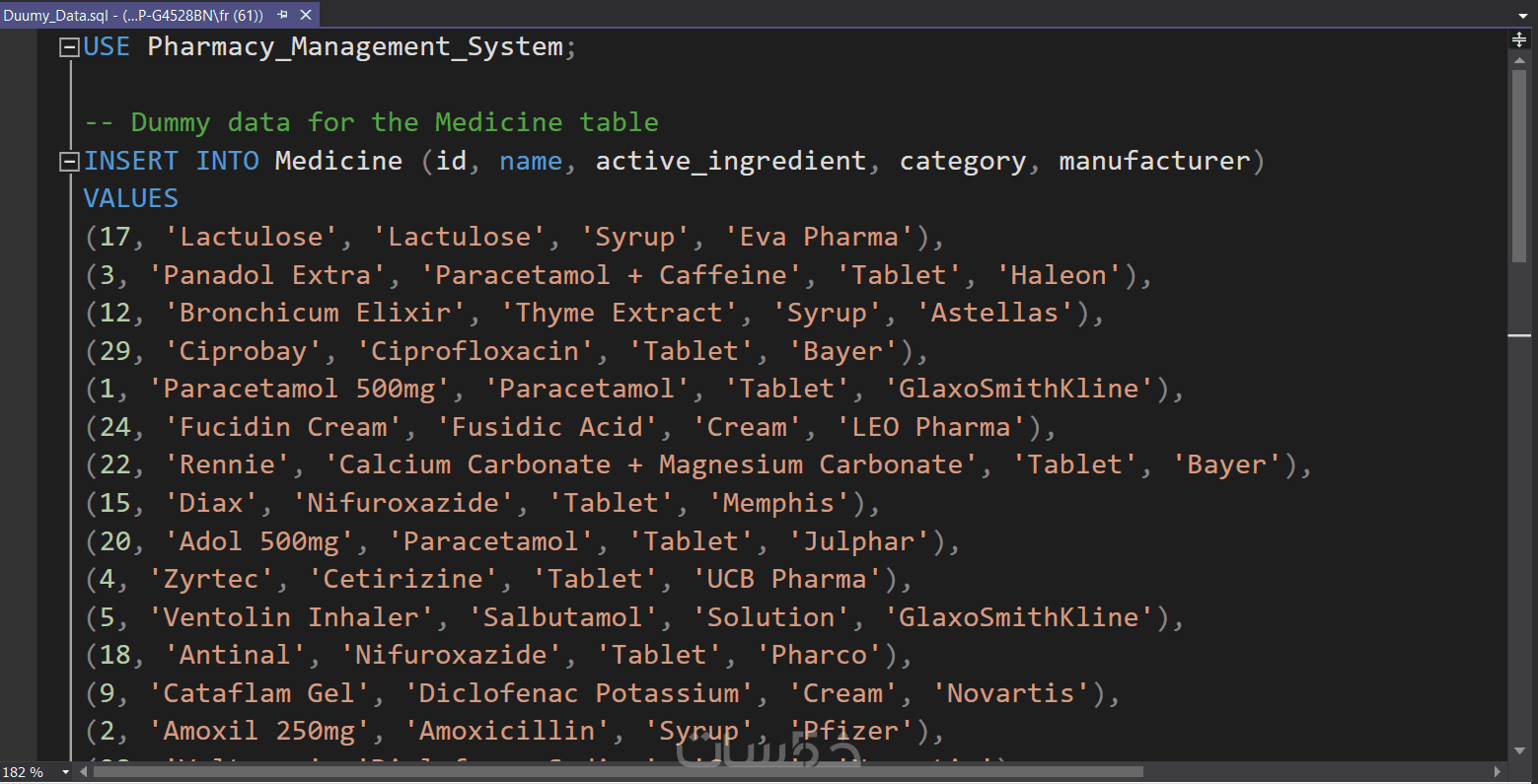 تعبئة الجداول ببيانات تجريبية (حتي 50 سجل لكل جدول).