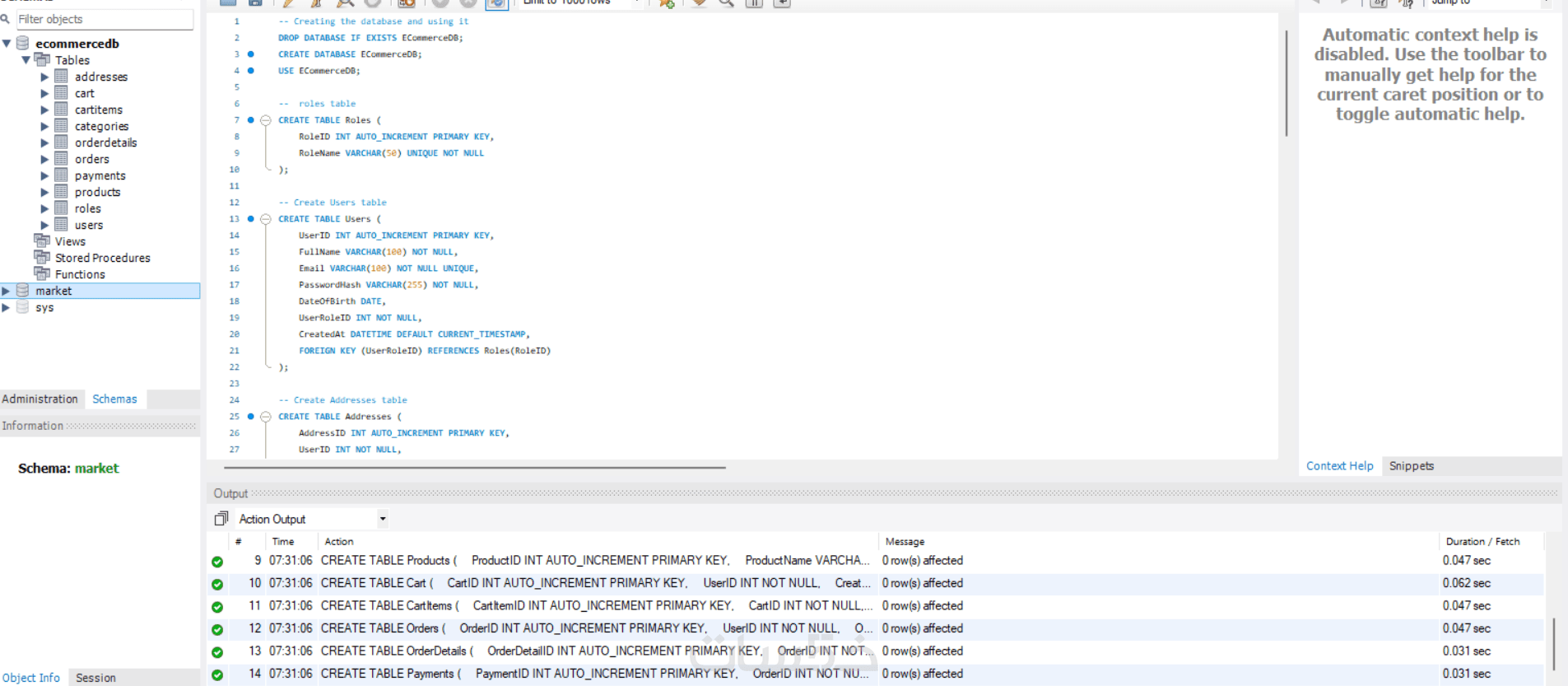 ملف يحتوي على أوامر إنشاء قاعدة البيانات