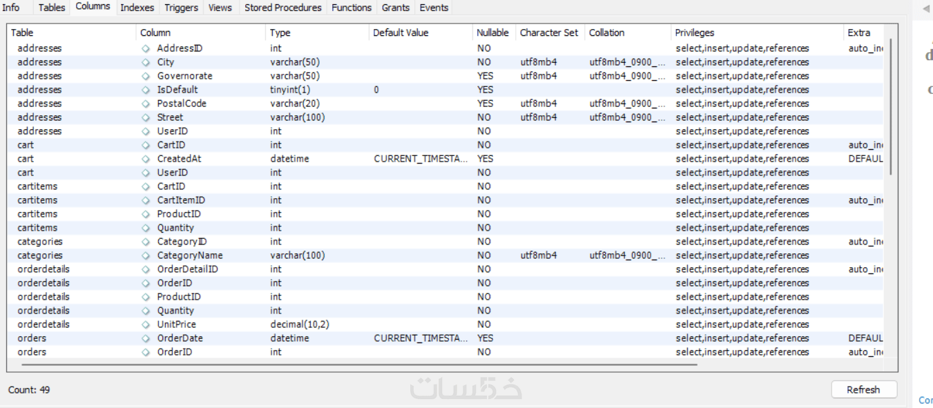 تسليم ملف SQL يحتوي على أوامر إنشاء الجداول