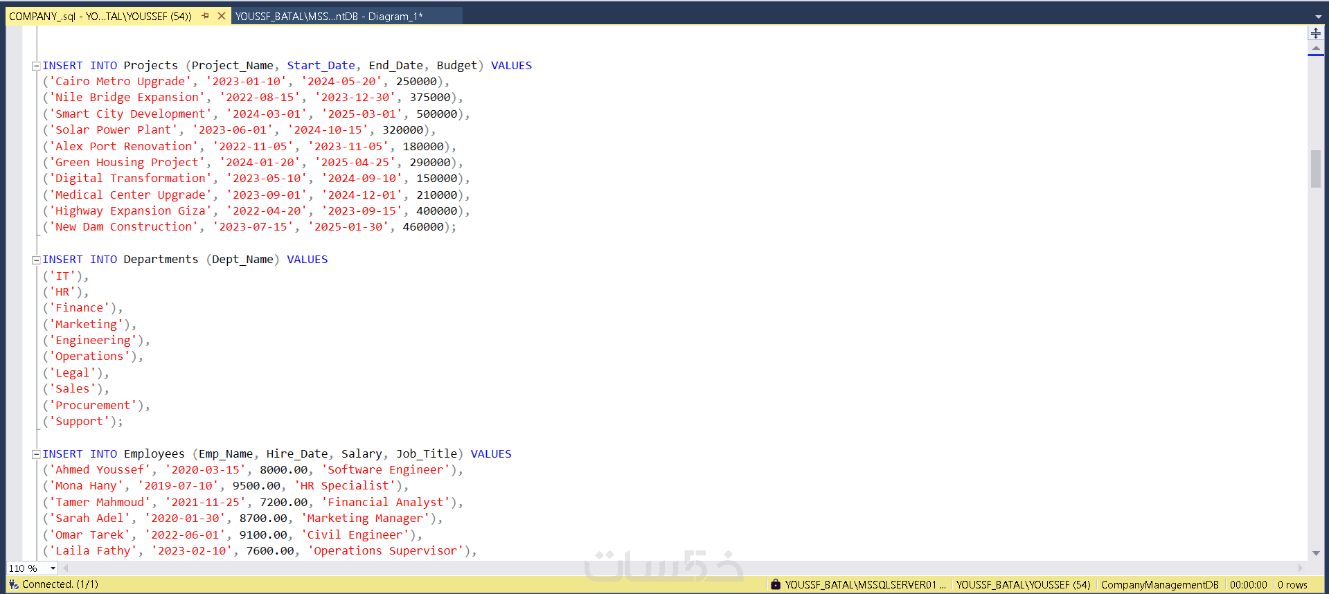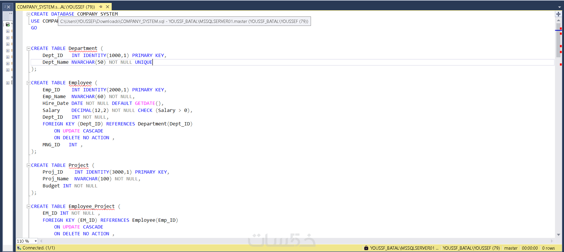 تسليم ملف .sql قابل للتنفيذ على SQL Server
