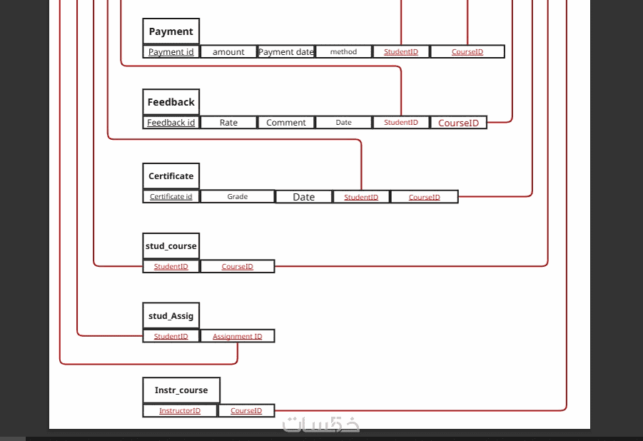 مع مراعاة درجة العلاقة (Cardinality) ونوع المشاركة (Participation) لكل علاقة على حدة.