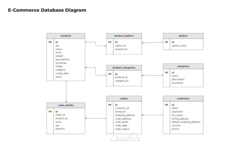 الخدمة الأساسية تشمل تصميم ERD حتى 5 جداول (Entities).