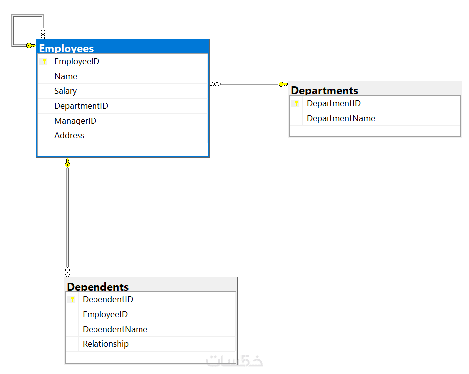 تحديد العلاقات + المفاتيح الأساسية والخارجية.