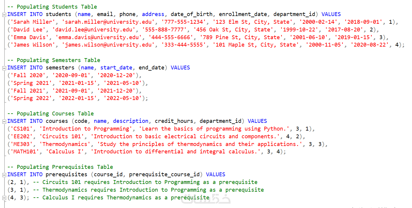 كتابة أكواد SQL واضحة مع تعليقات لسهولة التطوير مستقبلًا.