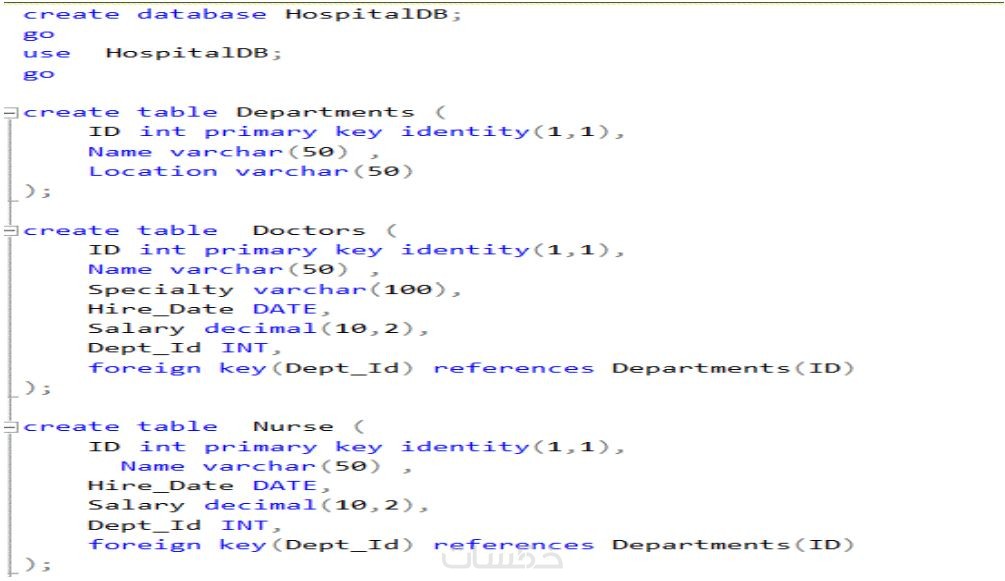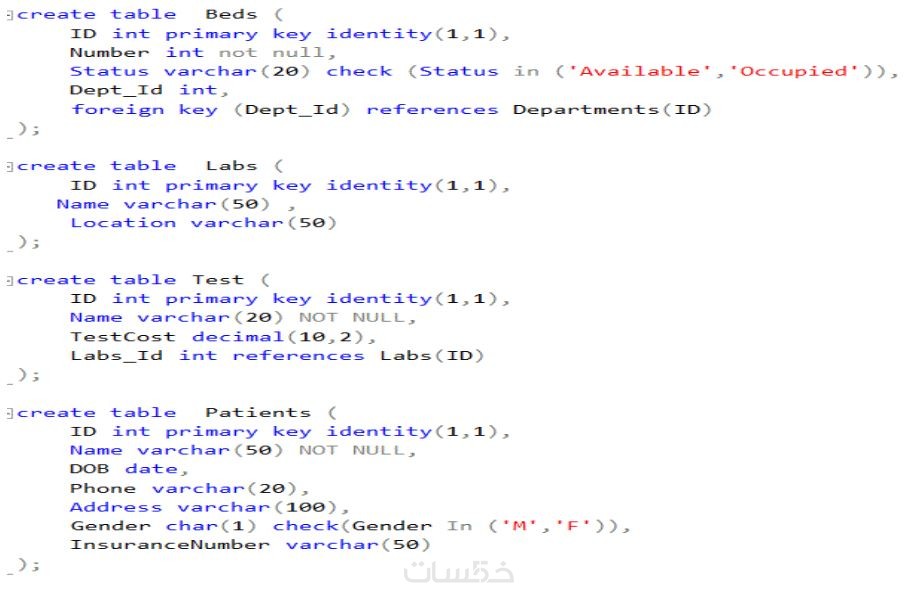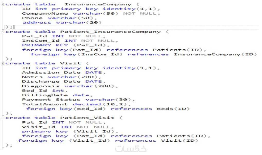 - كتابة سكربت SQL لإنشاء الجداول مع المفاتيح الرئيسية والخارجية .