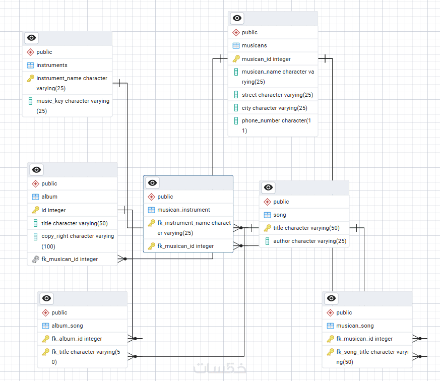 أحدد المفاتيح الأساسية لكل جدول، وربط الجداول ببعضها باستخدام المفاتيح الخارجية لضمان سلامة البيانات ومنع الإدخال الخاطئ.