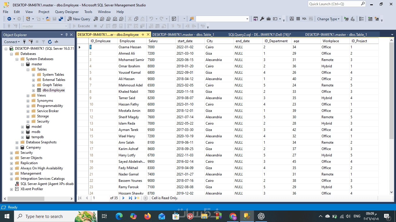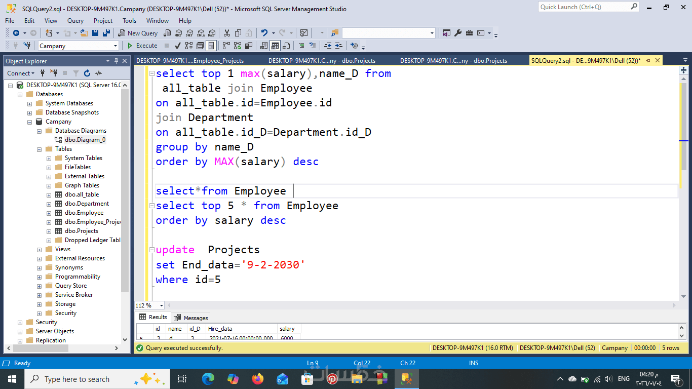 عمل 10 استعلامات تشمل join و Subquery