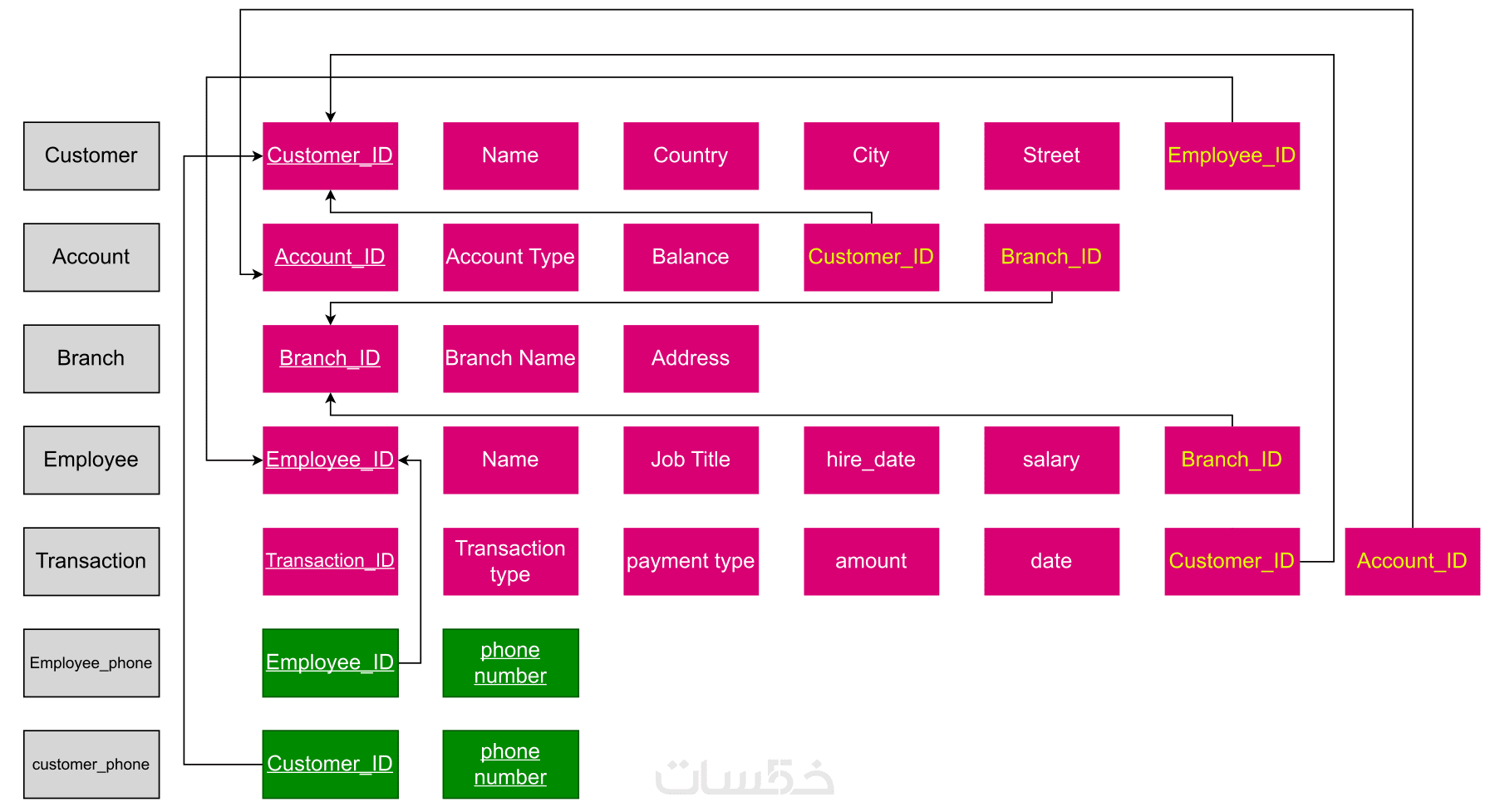 مخطط يوضّح الكيانات والعلاقات بينها بشكل بصري وسهل الفهم.