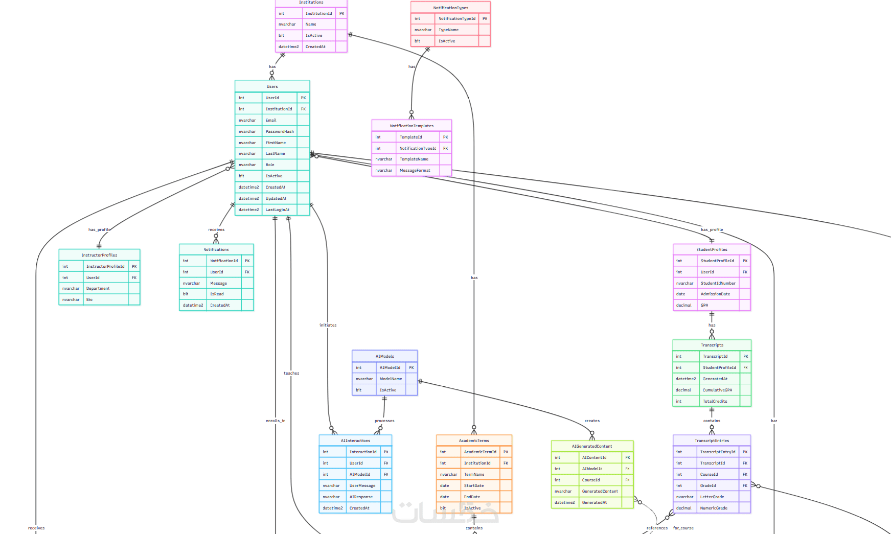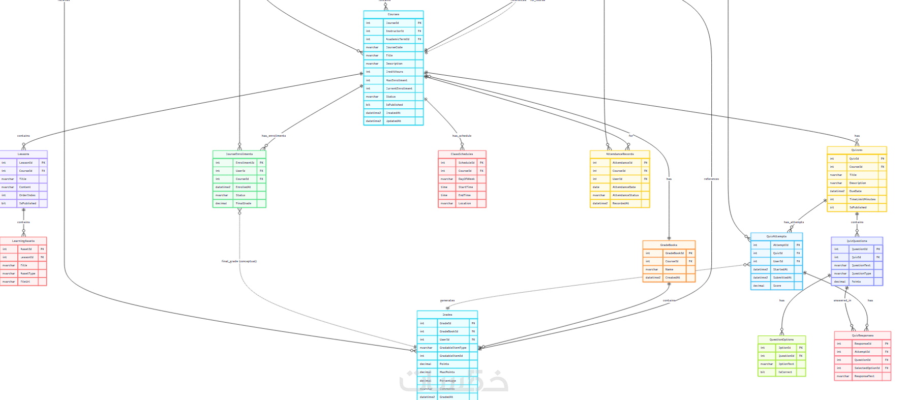 رسم ERD احترافي يعكس العلاقات بين الكيانات.
