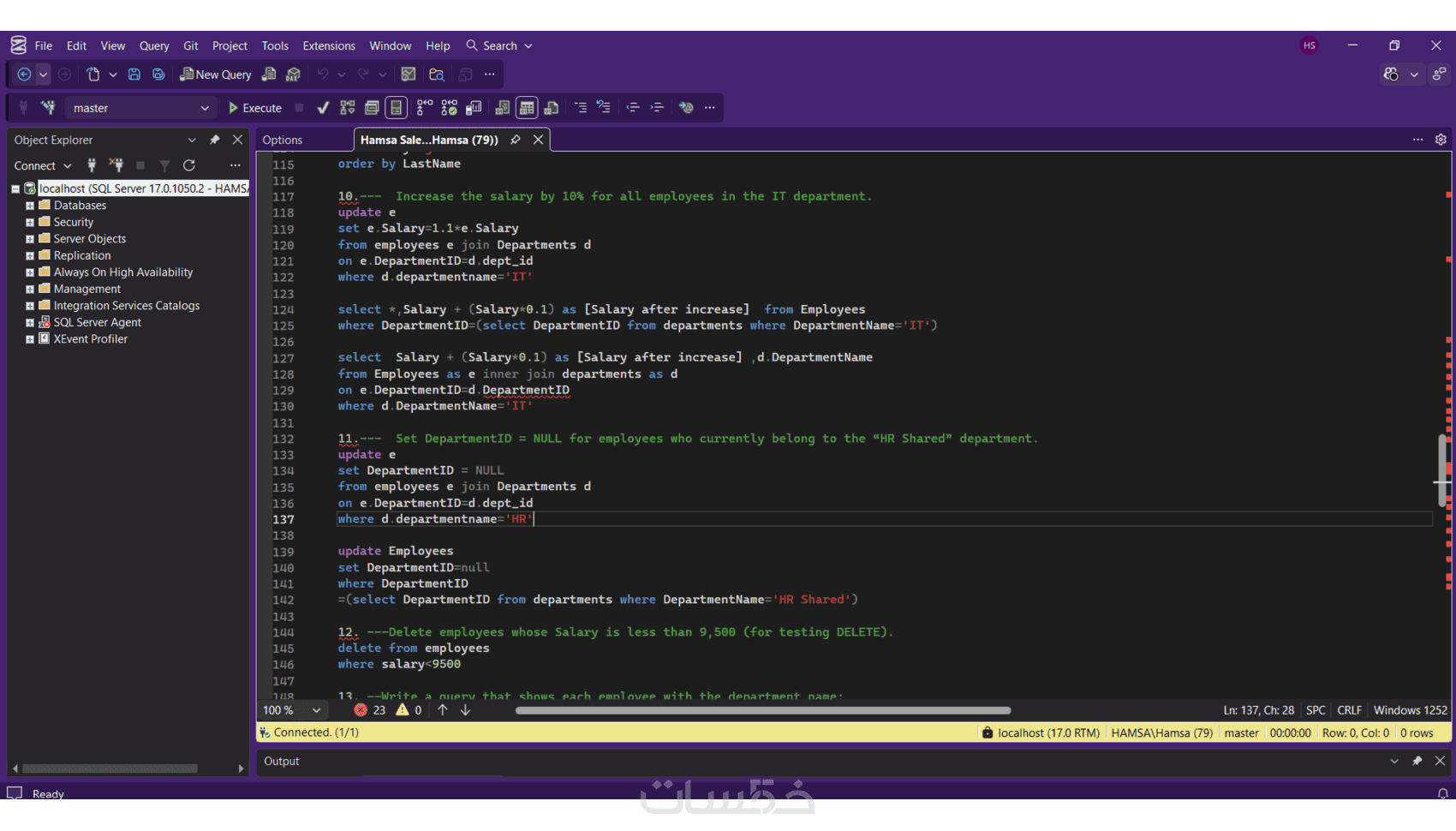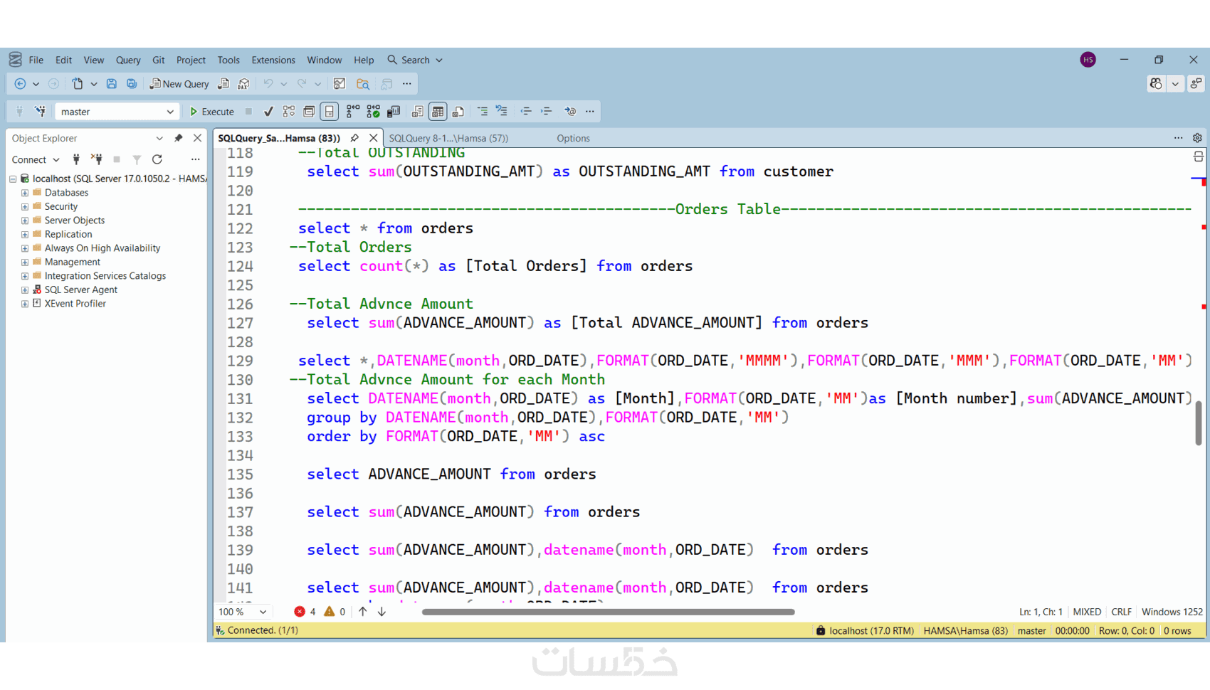 - تحليل واستعلام: 10 كتابة استعلامات مخصصة لاستخراج البيانات والتقارير باستخدام Joins & Aggregations.