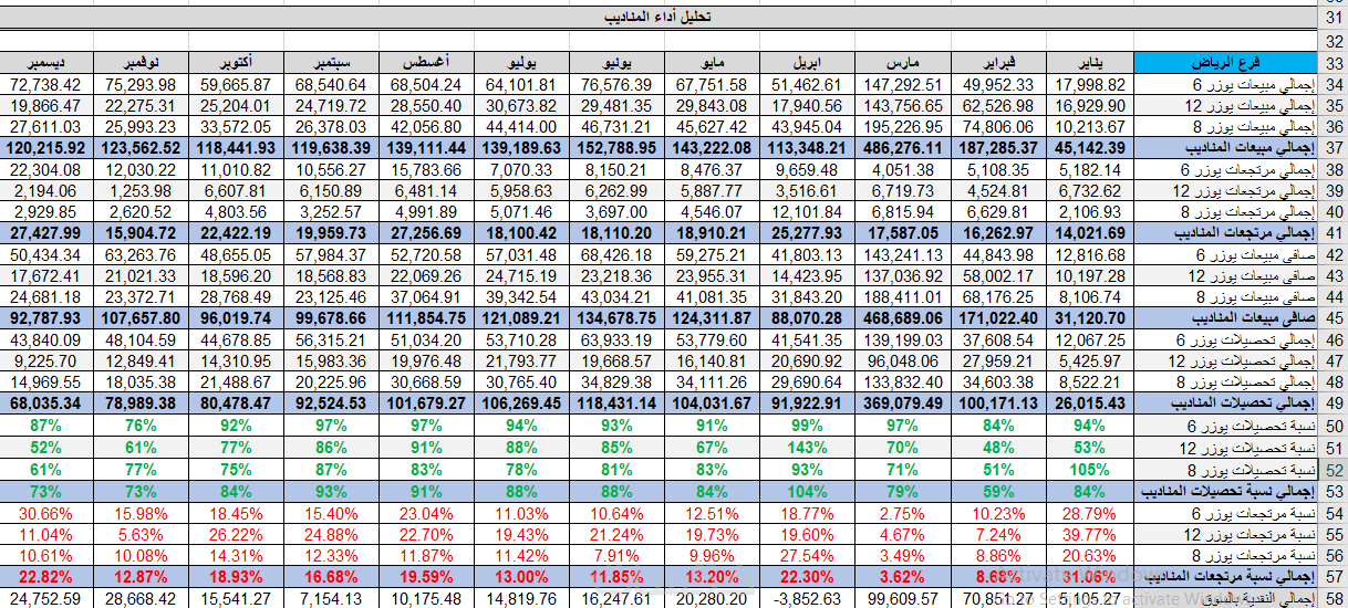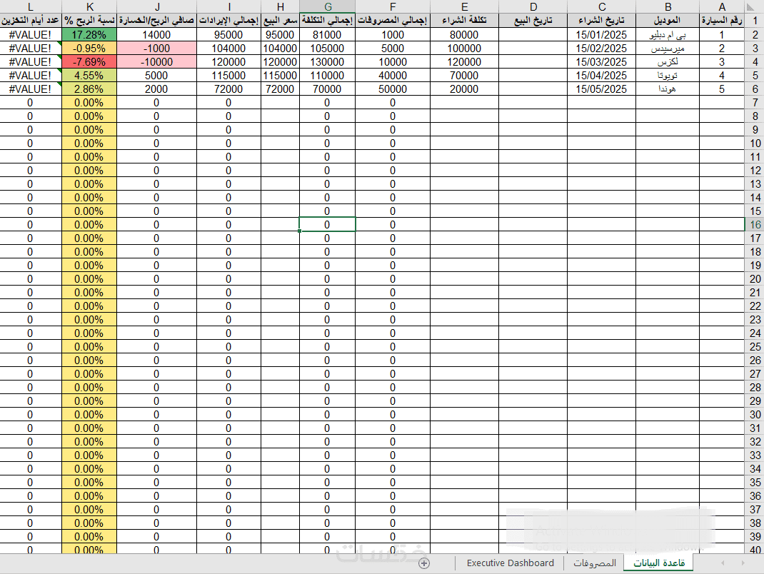 جدول حتى 300 صف و 15 عمود+ملخص بيانات واضح لمتابعة المبيعات والمصروفات وصافى الربح .