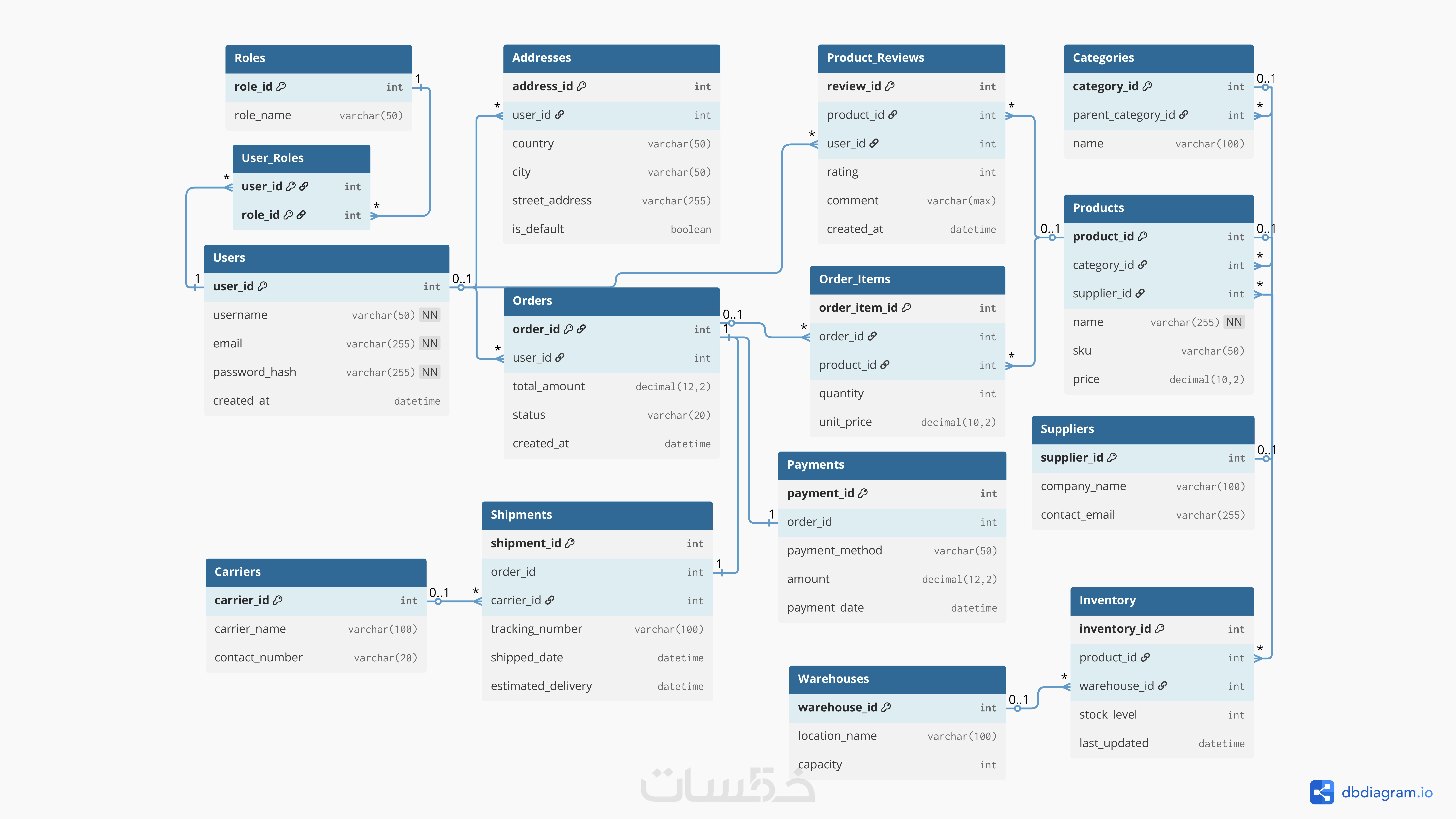 لن تستلم مجرد أكواد، بل ستحصل على مخطط هيكلي (ERD) ملون وواضح بصيغة PDF أو PNG يوضح العلاقات بين الجداول، مما يسهل على المبرمجين (Back-end Developers) فهم النظام فوراً.