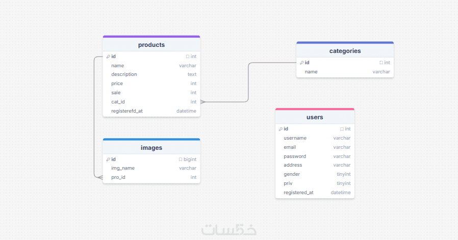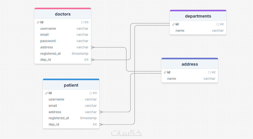 ساقوم بانشاء خمسة جداول واضافه العلاقات بين كل الجداول مقابل الخدمه