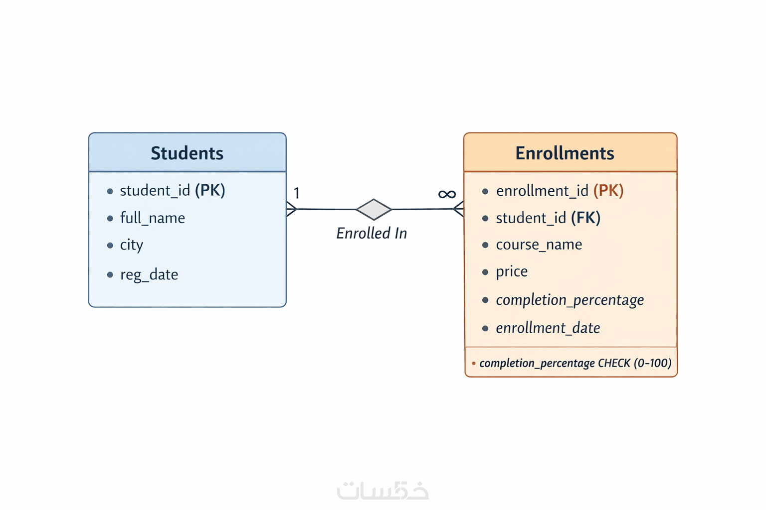 ربط الجداول باستخدام المفاتيح الأساسية والأجنبية بطريقة صحيحة.
