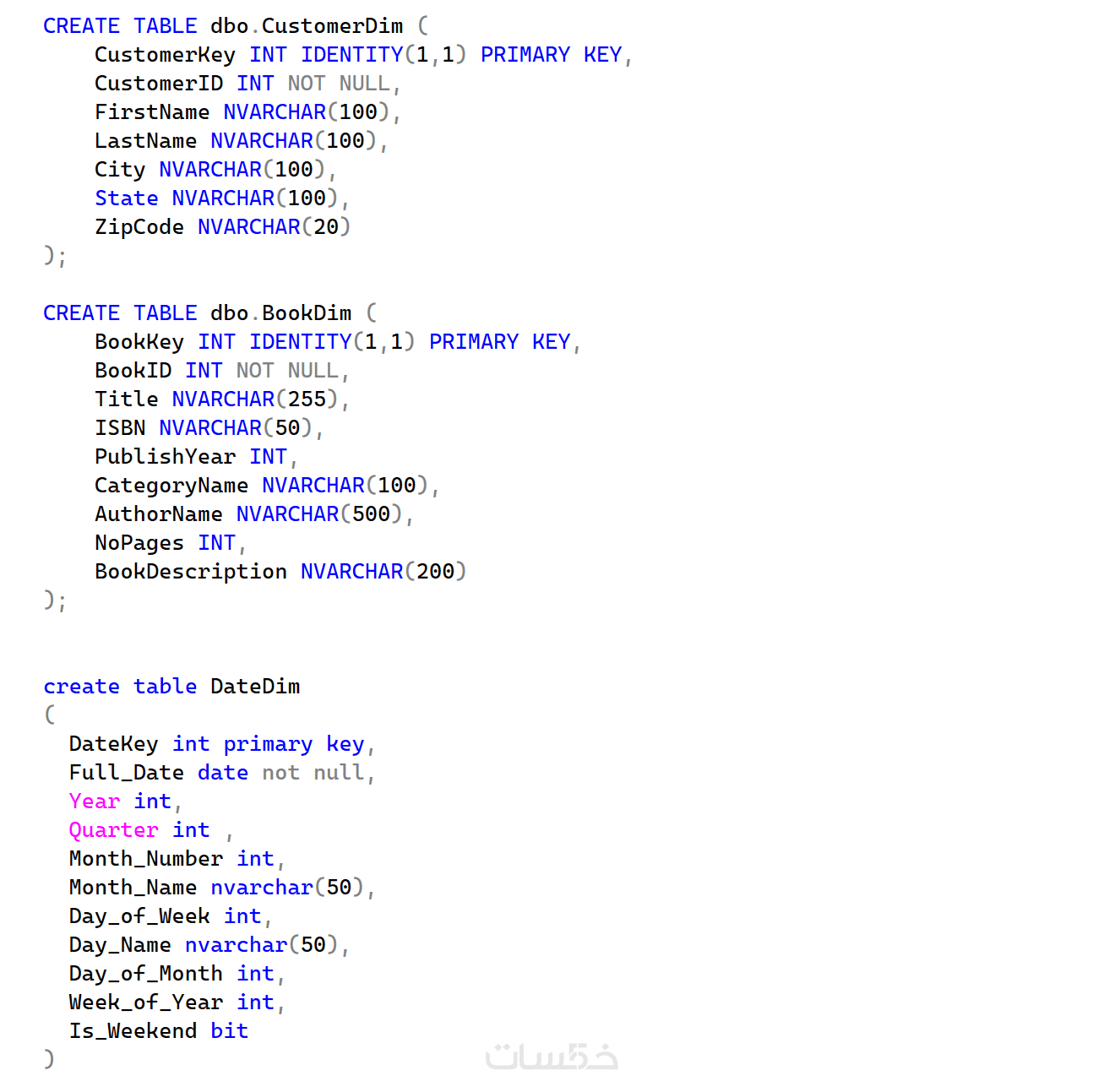 كتابة سكربت SQL منظم لإنشاء الجداول (Tables)