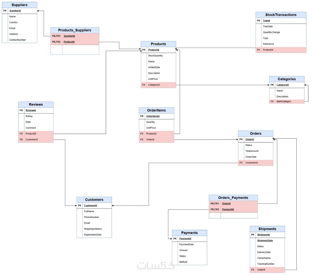 هيكلة الجداول والعلاقات بطريقة سليمة لضمان سلامة البيانات.