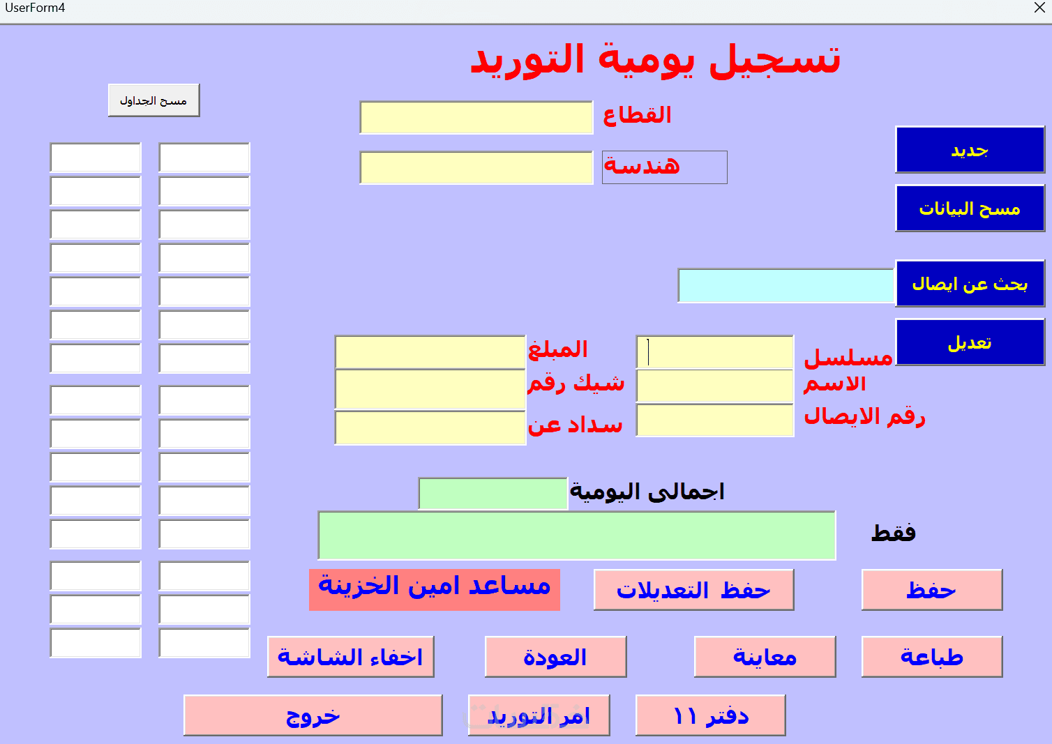 ادراج لكل العلاقات المحاسبية والبيانية للبنود ويمكن تقسيمه حسب الطلب الى عده جداول مع نظام ادخال مبسط يضمن سهوله