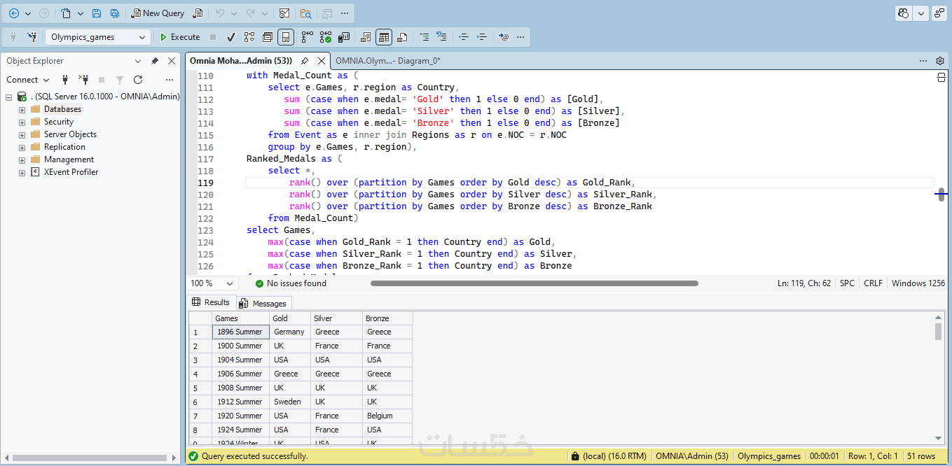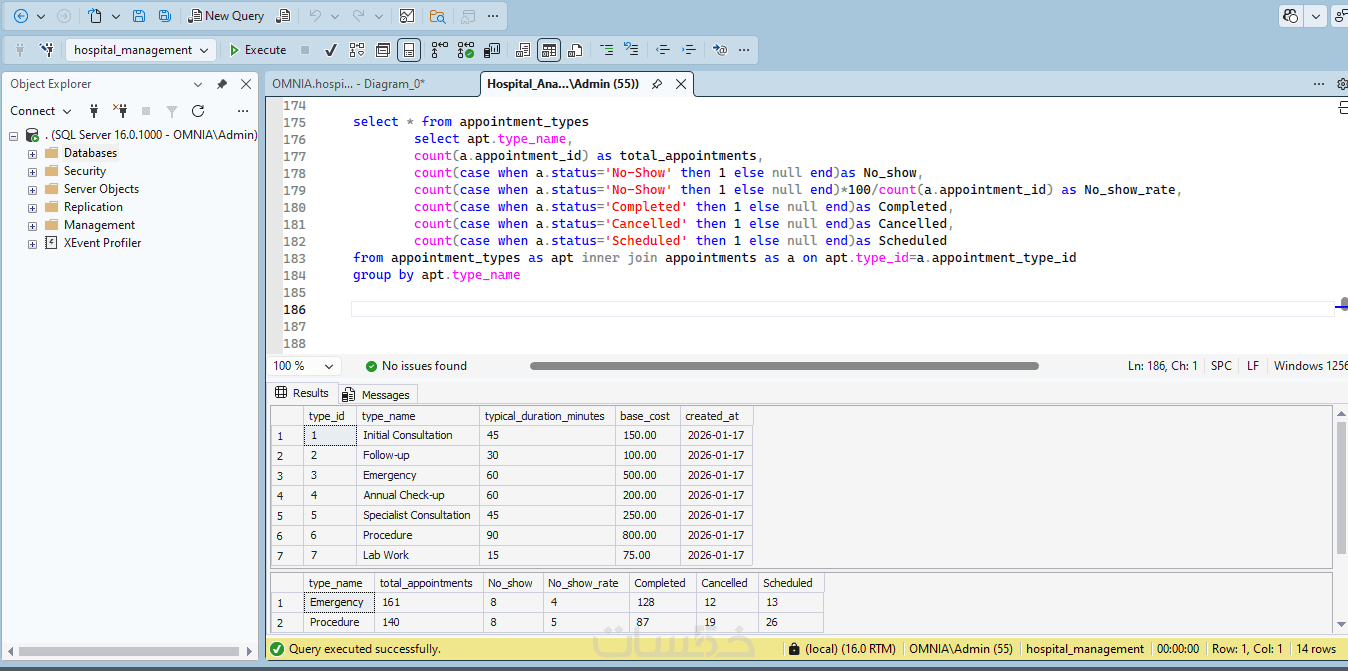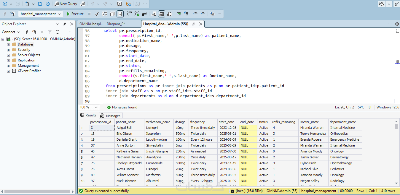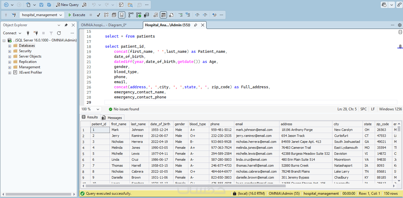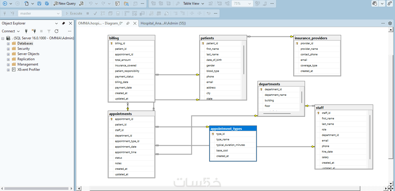 يوجد لديّ حلٌّ لمشاكلك، حيث سأقوم بعمل هيكلة قوية لبيانات مشروعك. سواء كنت تبحث عن نظام إدارة مستشفيات، تحليل بيانات رياضية، أو أي نظام مؤسسي معقد، أقدم لك خبرتي في بناء قواعد بيانات باستخدام SQL Server.