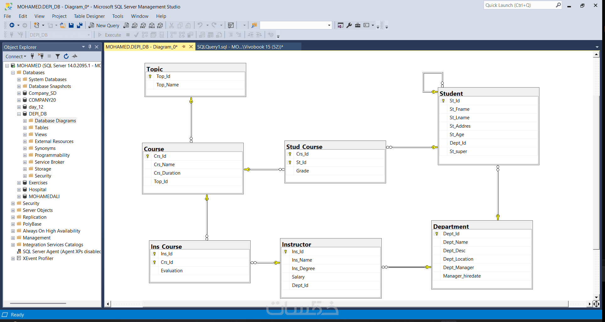 هل تمتلك مخططاً هيكلياً (ERD) أو مخطط ربط (Mapping) وتحتاج إلى تحويله إلى قاعدة بيانات واقعية ومنظمة؟ أقدم لك خدمة احترافية لبناء وتصميم قواعد البيانات على نظام Microsoft SQL Server لضمان هيكلة بيانات سليمة وأداء تقني عالٍ.