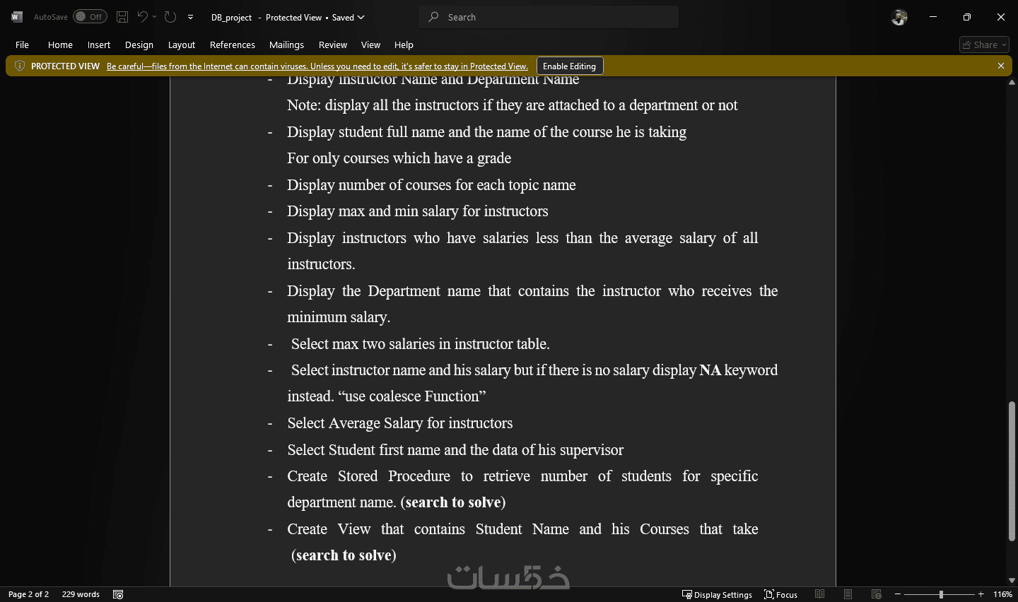 قاعده بيانات تحتوى علي 6 جداول 25 صف