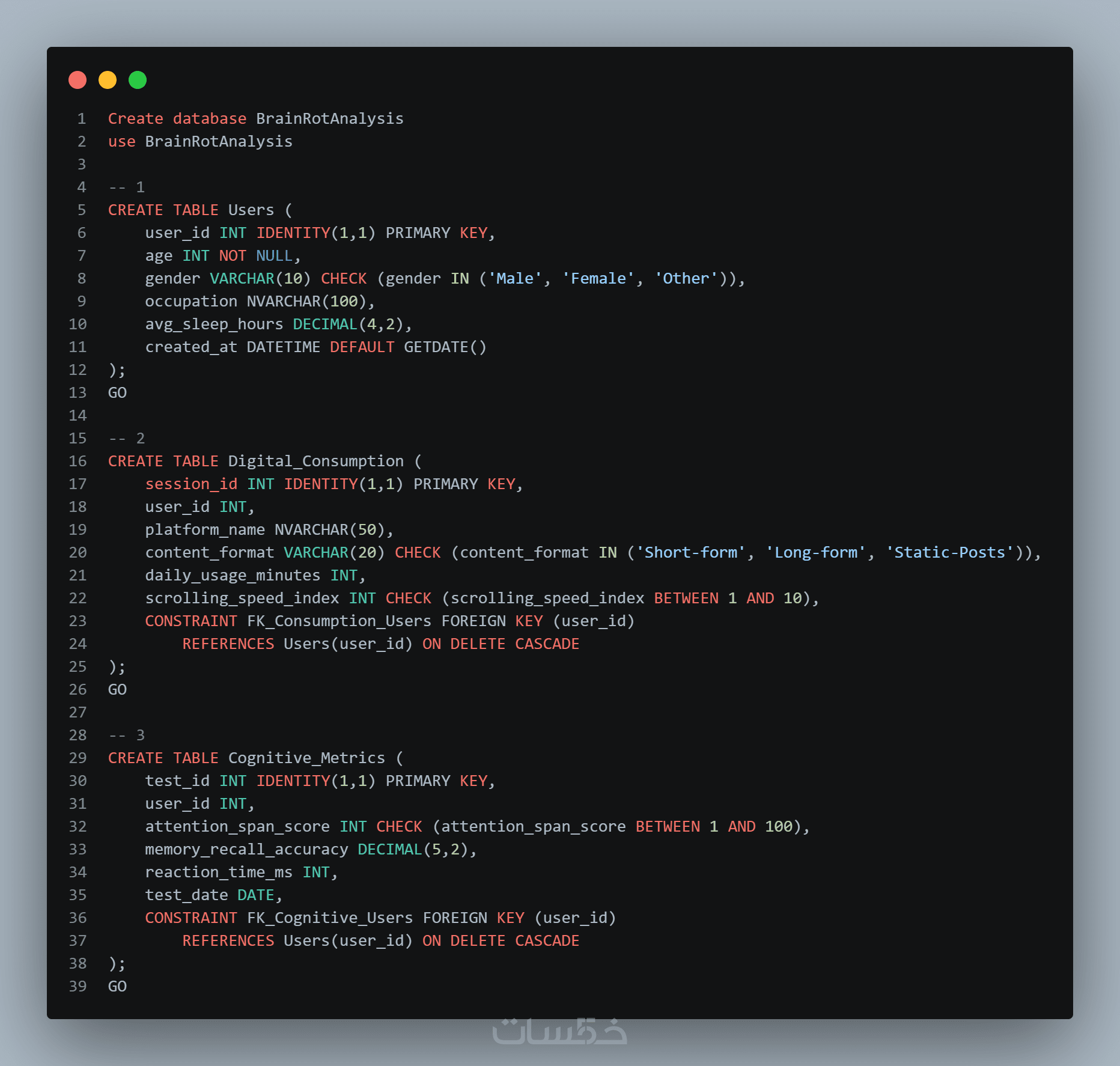 تحويل التصميم إلى كود SQL كامل (CREATE TABLE)