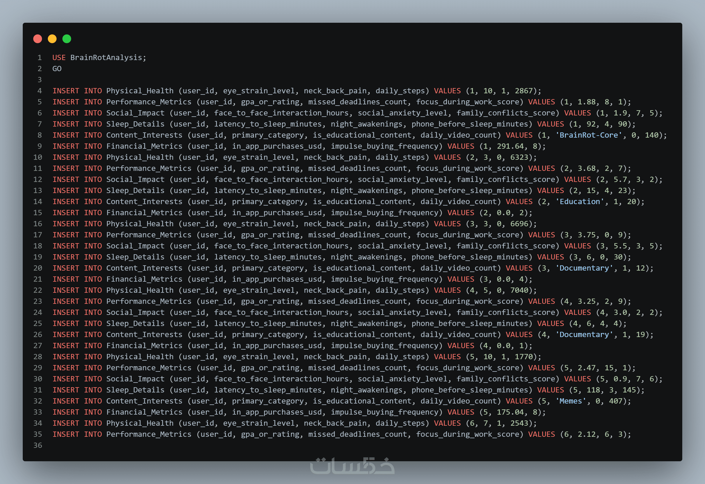 ملف SQL جاهز للعمل على: SQL Server or MySQL or PostgreSQL