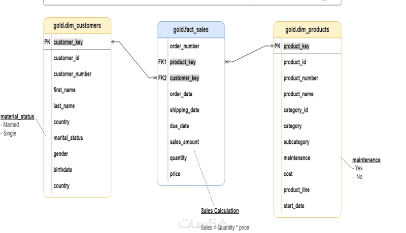 إعداد الفهارس (Indexing) وتوثيق كامل لعلاقات الجداول وتقديم مخطط مرئي يوضح هيكل المستودع بالكامل