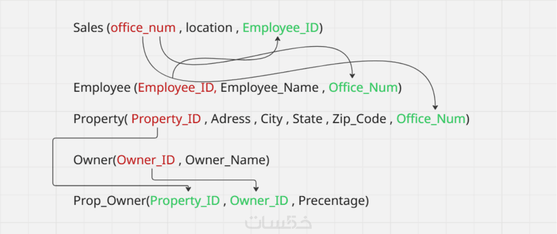 تحديد المفاتيح الأساسية (Primary Keys) والمفاتيح الأجنبية (Foreign Keys).