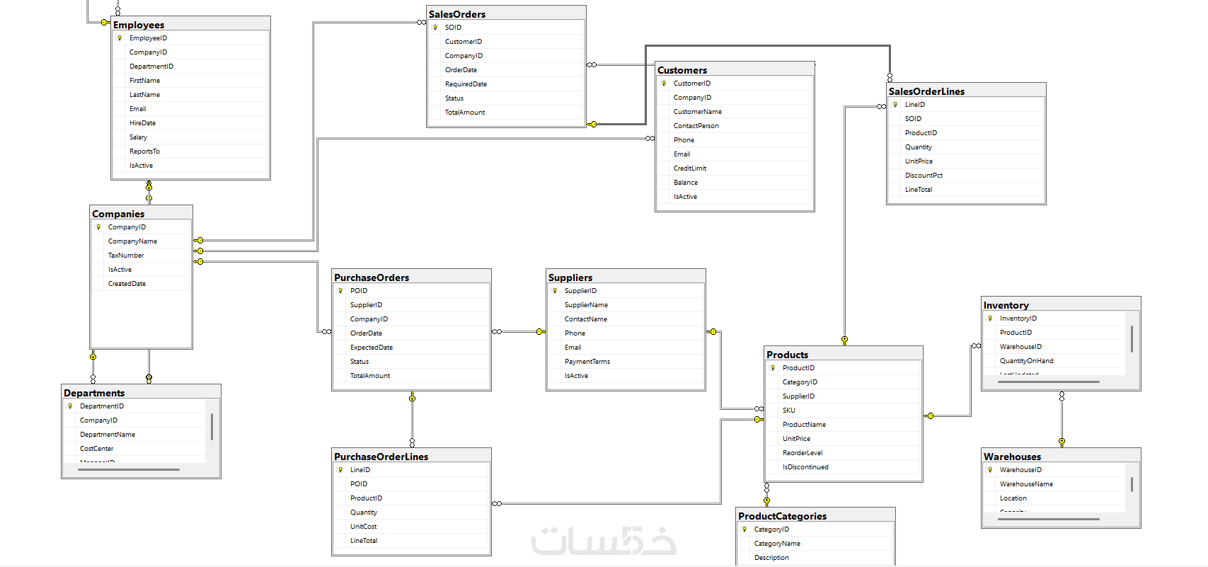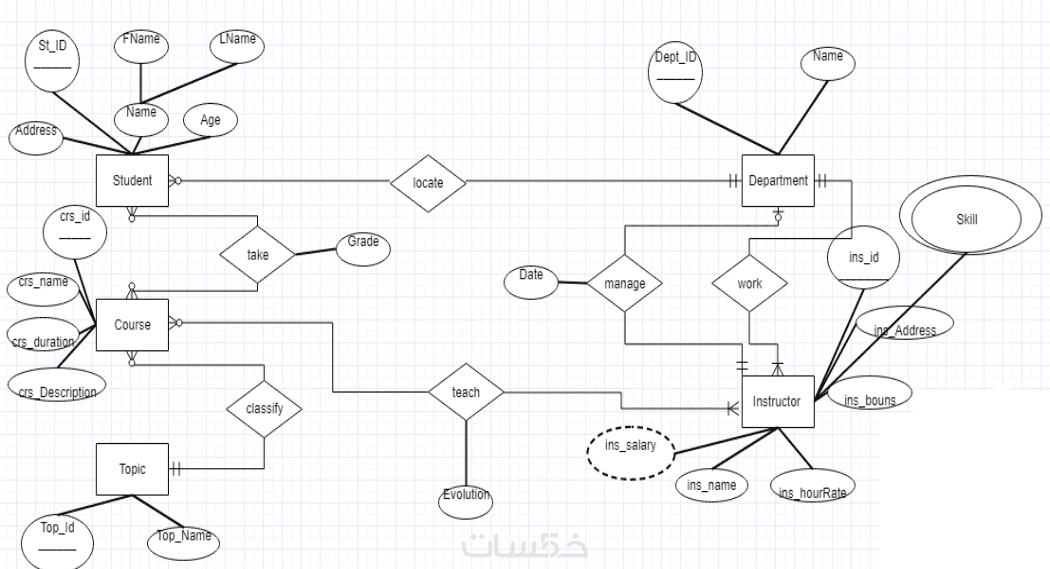 2) المخطط المبدئي: أسلمك الـ ERD للمراجعة والتأكد من تغطية كل احتياجات المشروع.