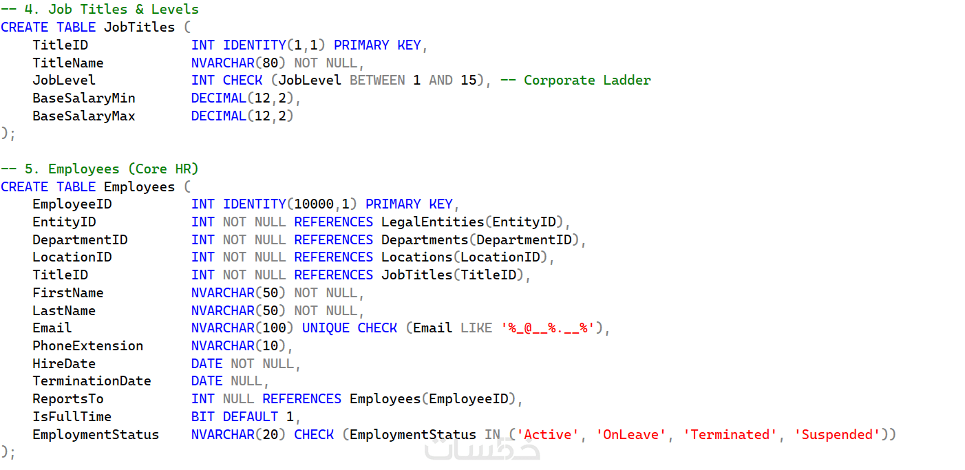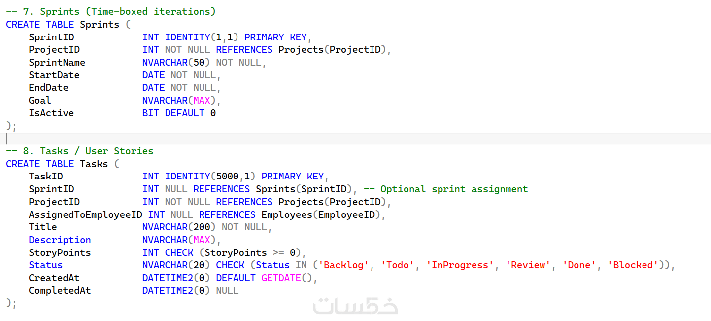 3) التنفيذ البرمجي: تحويل المخطط إلى جداول حقيقية (SQL Scripts).