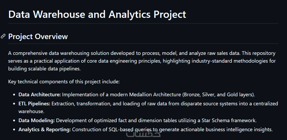 هل تعاني من بيانات متناثرة في أنظمة مختلفة وتحتاج إلى تجميعها، تنظيفها، وتحميلها في قاعدة بيانات مركزية (Data Warehouse) جاهزة للتحليل؟