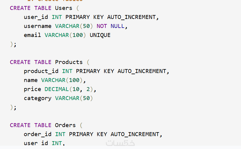 تصميم قاعدة بيانات كاملة لنظام متكامل (مثل متجر الكتروني, نظام مخازن, الخ).