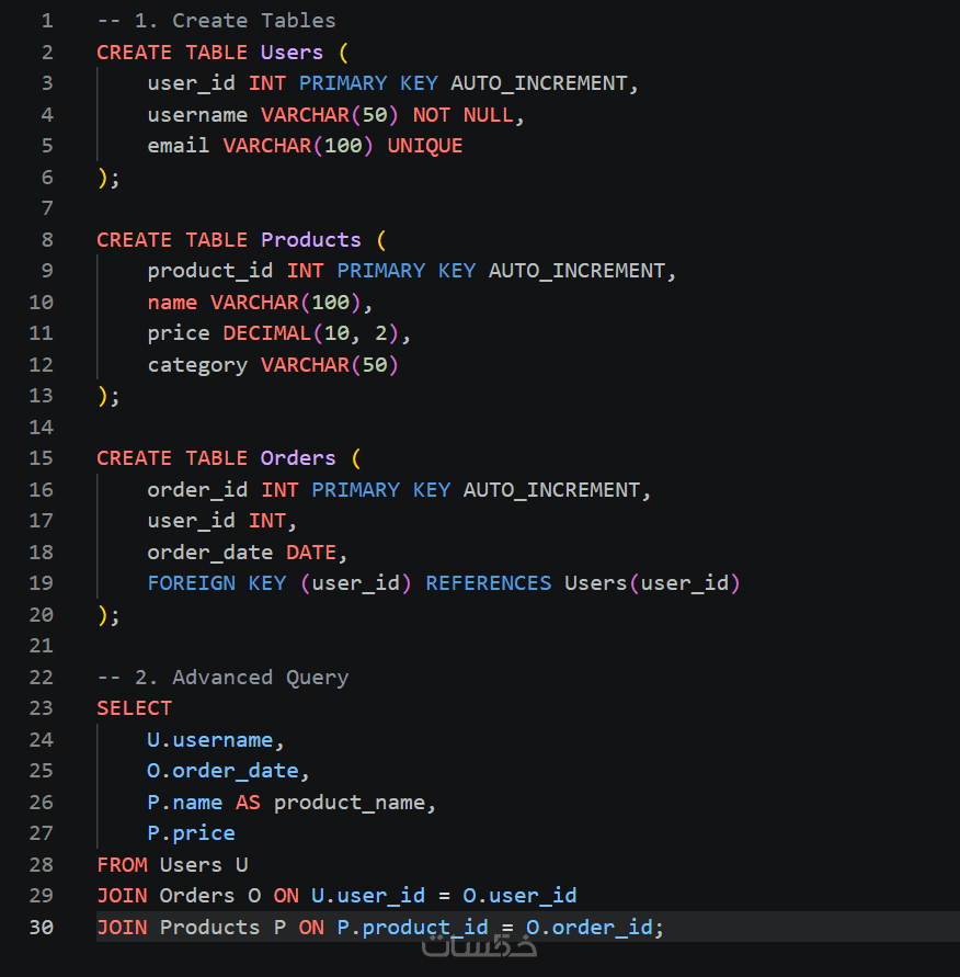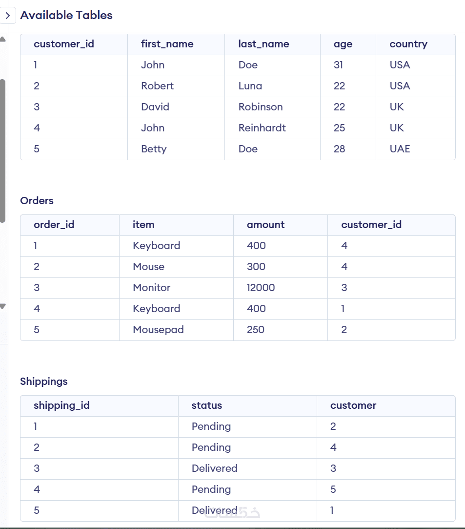 أو كتابة 3 استعلامات SQL (Queries) دقيقة لاستخراج بيانات محددة من قاعدة بياناتك الحالية.