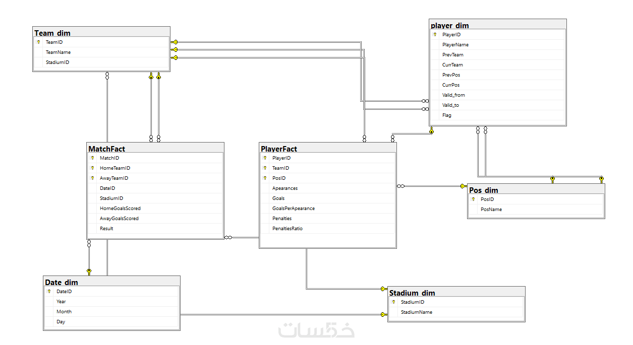 مخطط يوضح الجداول والعلاقات بينها بشكل احترافي.