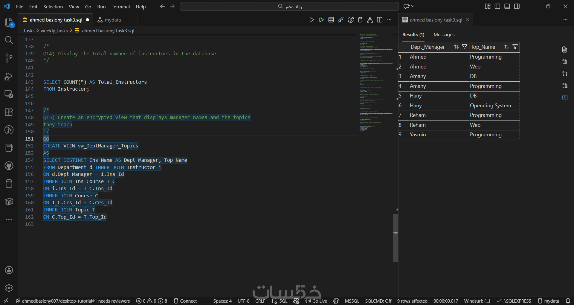 كتابة حتى 10 استعلامات SQL لتحليل البيانات واستخراج النتائج.