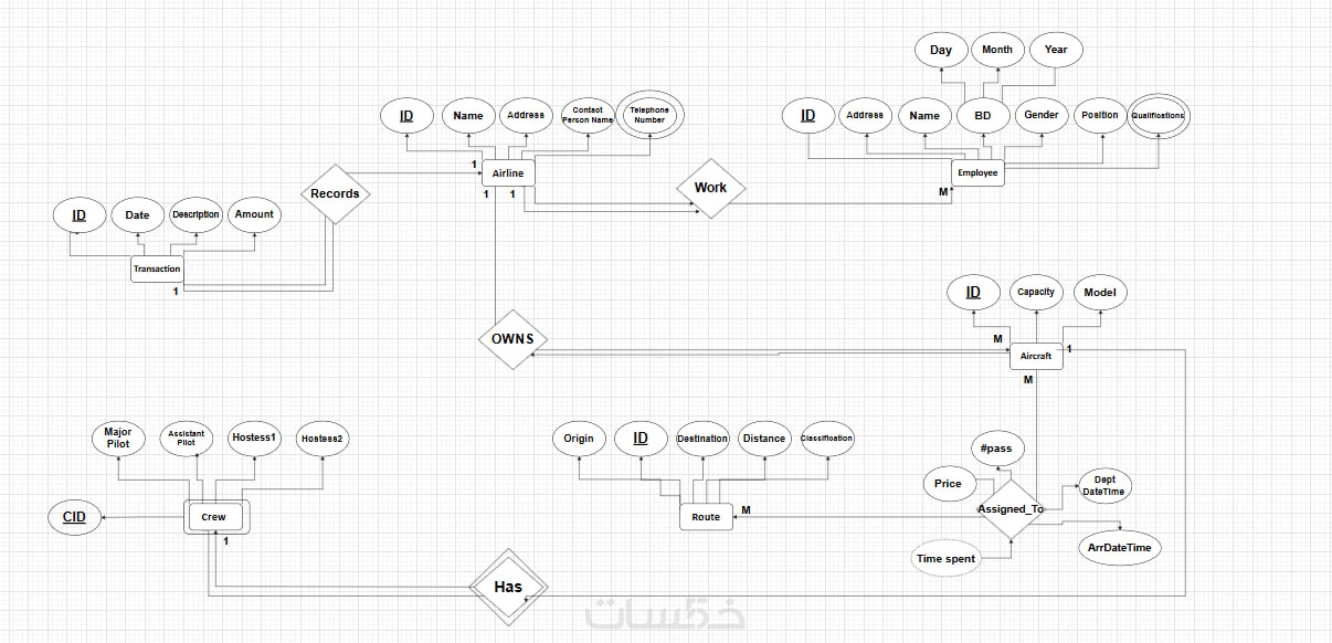 مخطط ER Diagram احترافي ومنظم يوضح جميع الكيانات والعلاقات مع توافر عمل Mapping لمخططات