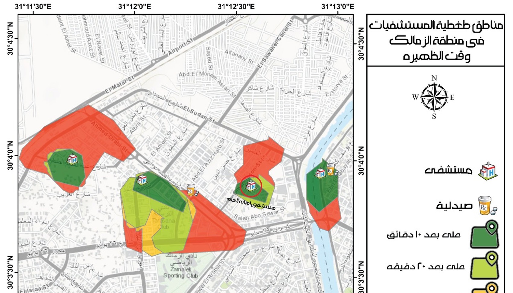 8- اخراج الشكل النهائى للخريطة بالصورة اللتى تتناسب مع موضوع البحث والتحليل