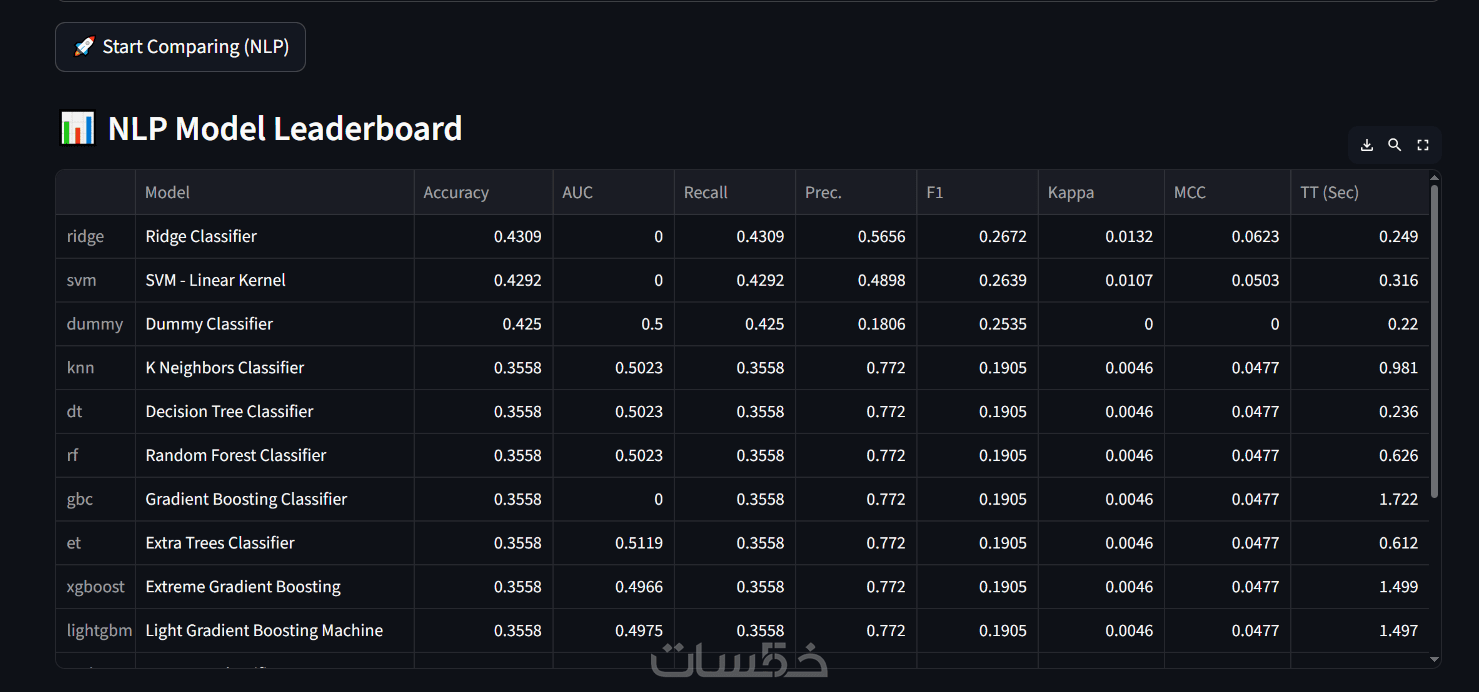 انشاء نماذج معالجة اللغة الطبيعية NLP