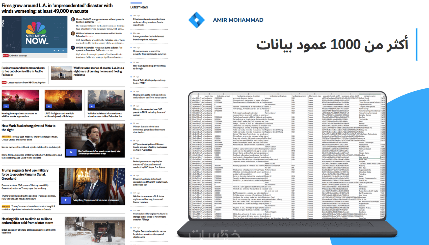 استخراج البيانات من المواقع الإخبارية والعلمية الشهيرة.