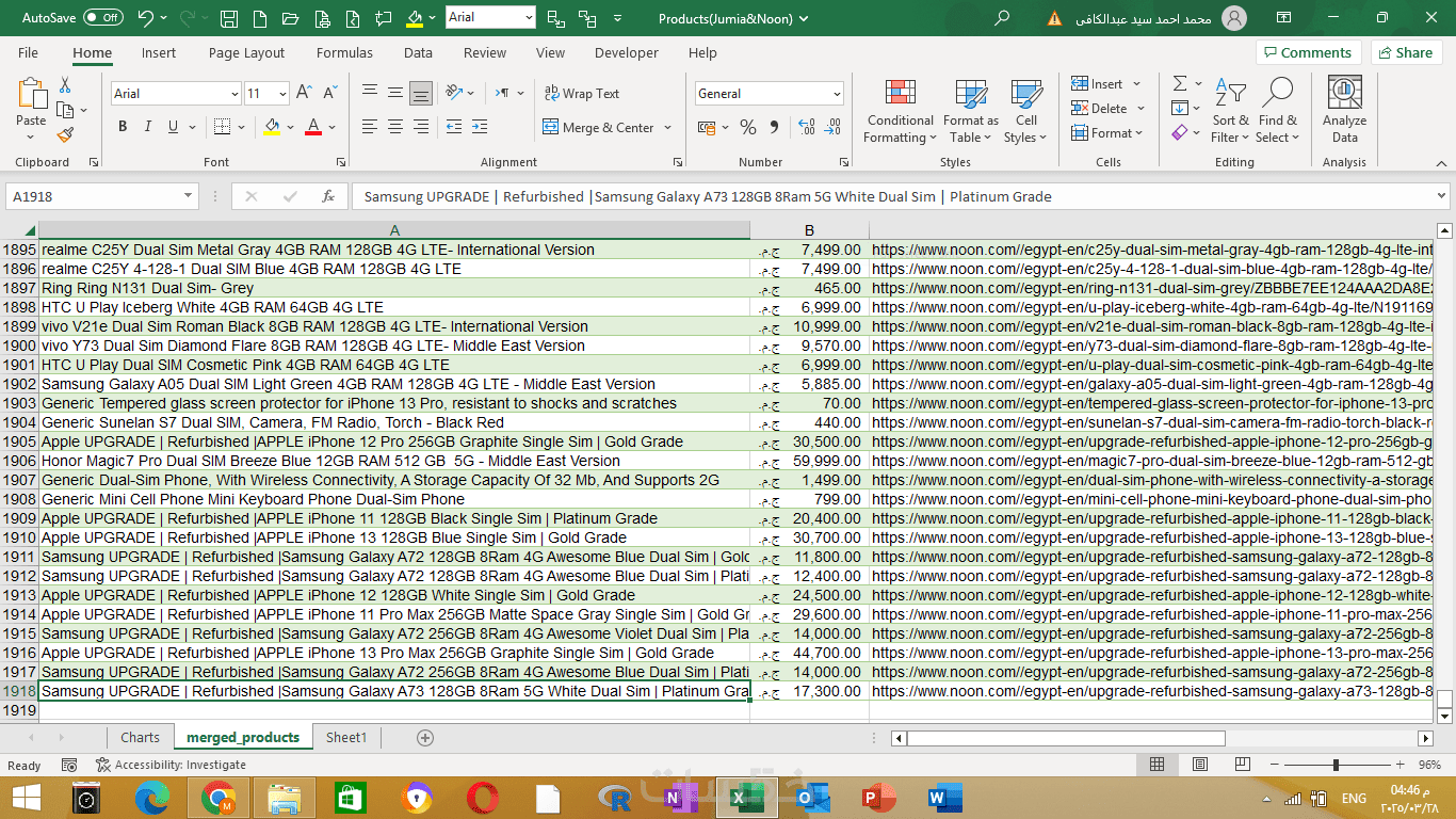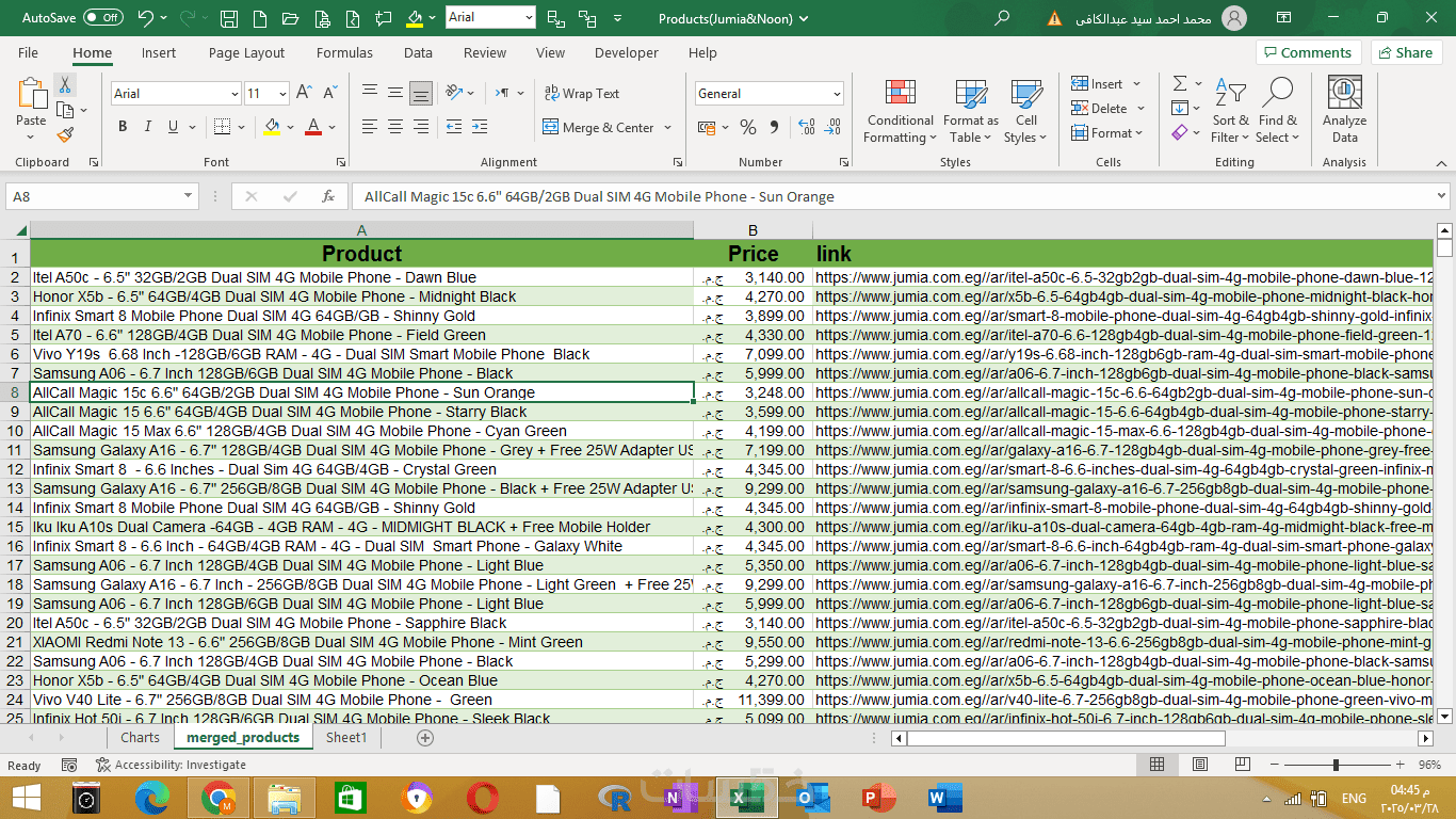هل تحتاج إلى جمع بيانات المنتجات من مواقع مثل جوميا ونون بطريقة دقيقة ومنظمة؟ سأوفر لك ملف Excel أو CSV مرتب يتضمن جميع البيانات المطلوبة، مما يساعدك في تحليل المنتجات واتخاذ قرارات أكثر ذكاءً.